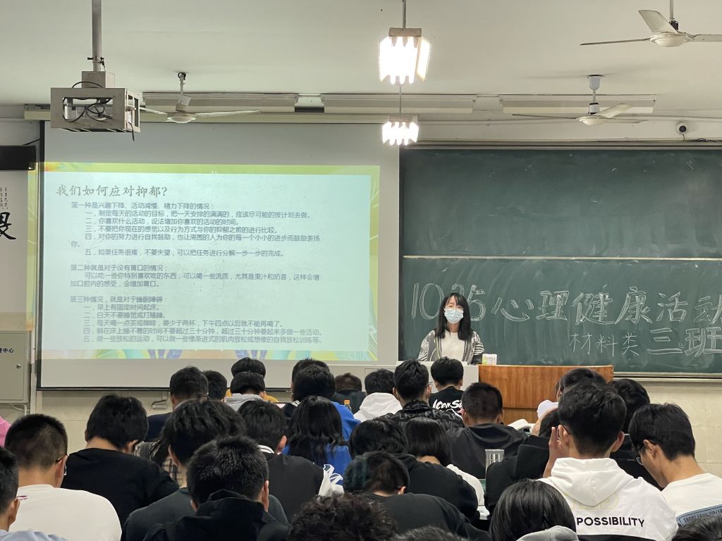 高度重视学生的成长,引导、教育学生正确迎接新生活、新挑战,并发挥了大学生发展辅导站的作用,积极组织学生心理团辅、手绘明信片、心理健康班会等活动,提高了学生对心理健康的重视,促进了学生身体健康发展,营造了温馨团结向上的氛围。