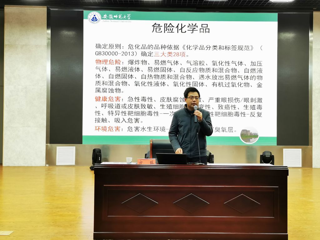副院长方臻分别作校园安全、实验室化学品安全专题报告,报告会由学院党委副书记李古州主持。