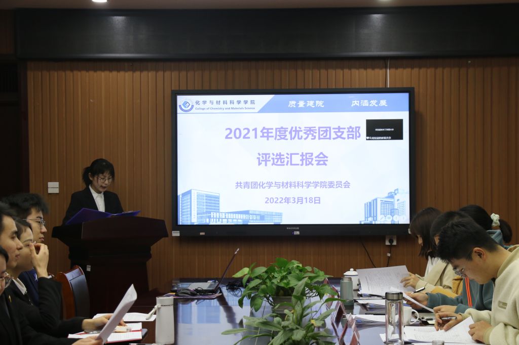 各参评团支部团支书前期精心准备支撑材料,通过PPT展示,围绕思想建设、组织建设、学风建设、作风建设、制度建设、素拓工作、创新工作等方面,对本支部2021年度工作情况进行了总结汇报。各团支部汇报人具体展示了所属团支部在2021年工作开展情况,重点突出了各团支部团员在2021年度的工作、学习成果,展现了各自的支部特色。本次评选会共有9个团支部参与评选,评委老师现场打分,最终评选出5个优秀团支部。