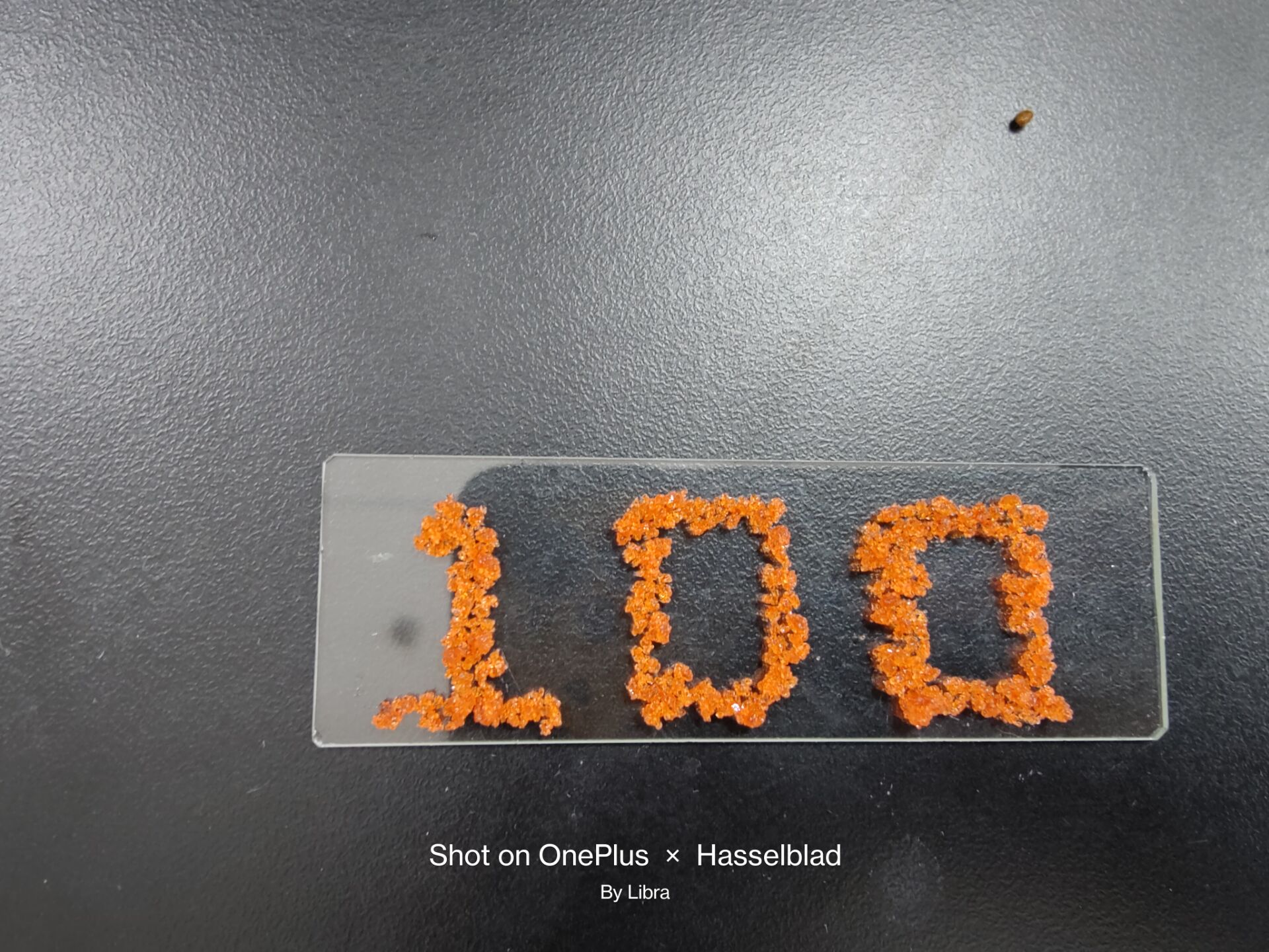 化材学子们发挥主动创造性,以红色文化标识等为主要内容,设计出创意图案,并在老师的指导下走进实验室,利用化学科学专业知识与技能,通过溶液、熔融、化学气相沉积等方法制作与主题相关的创意晶体。在制作晶体过程中,每个团队的同学齐心合作,秉承着认真细致的科研精神,自行设计化学实验并制作出了具有红色寓意的晶体。同时,同学们通过自主设计性实验提升了自己的实验操作能力和创新能力,有的团队利用硝酸和氢氧化钴的反应,利用超声和重结晶,得到红色晶体后将其拼凑成“100”的图案,为党的百年诞辰送上真挚的祝福;有的团队则利用橙红色的重铬酸钾晶体等加工绘制成图案,致敬党的百年华诞;有的团队用搭建好的框架自然结晶沉淀出相应的“100、五角星、党徽等图案,庆祝中国共青团建团100周年;有的则充分发挥自身想象力,利用碘化铅等试剂设计出“百年‘晶’‘碘’,传承‘铅’载”的晶体作品。
