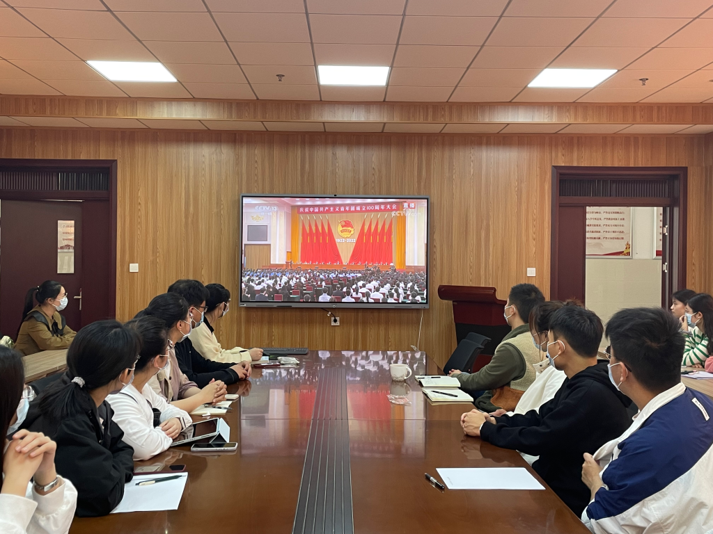 组织各年级青年学生通过网络直播共同收看庆祝中国共产主义青年团成立100周年大会,从大会中汲取青年力量,传承青年精神。