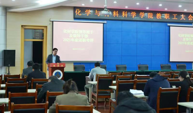 会上,学院领导班子和领导人员进行2021年度工作述职,全体教职工对领导班子和领导人员进行了民主测评、评议。其他分管领导通报了近期相关工作,布置了下一阶段的重点工作。