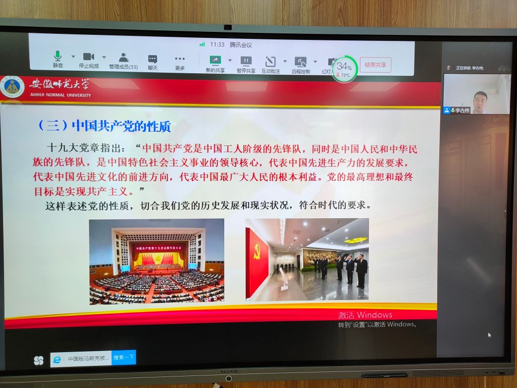 党委副书记李古州为全体学员作《中国共产党的性质和宗旨》线上报告。他向学员们阐释党的性质,党的性质不仅决定着政党自身建设的各个方面,也决定着党员党性修养的内容和要求。他指出,正确认识和把握党的性质,对于入党积极分子锤炼党性具有十分重要的意义。他强调,希望同学们自觉做远大理想和共同理想的鉴定信仰者和忠实实践者,切实提高坚定理想信念的思想自觉,在实际学习工作中践行全心全意为师生服务的宗旨。
