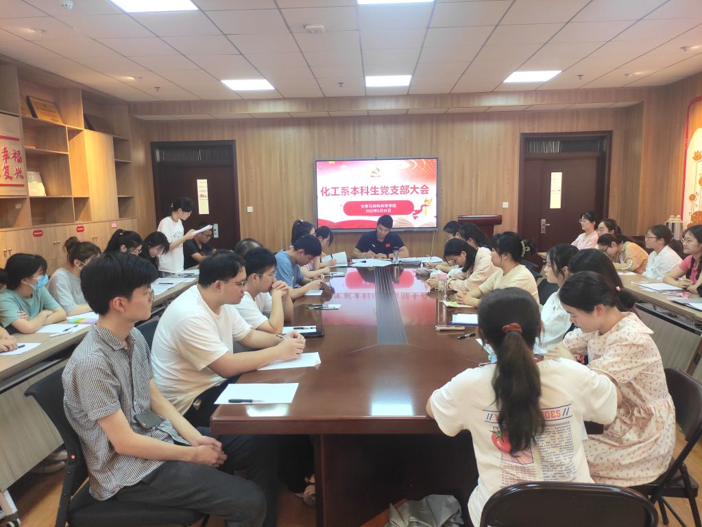 化工系本科生党支部在礼勤楼707室召开党支部大会,大会讨论接受涂晶晶等3名同志为中共预备党员,及预备期满的张婷婷等7名同志如期转正的相关事宜,支部全体党员、发展对象参加会议,大会由支部书记梅冠东主持。