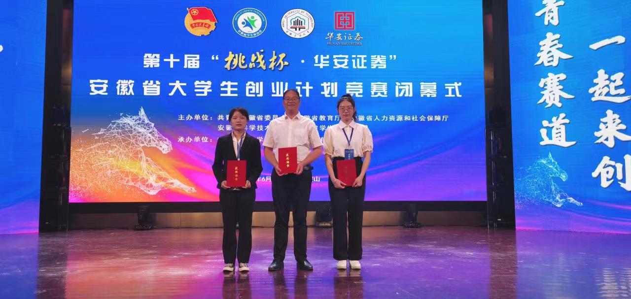 刘金云)6月16日,由共青团安徽省委员会、省教育厅、省人力资源和社会保障厅、省科学技术协会、省学生联合会主办的第十届“挑战杯·华安证券”安徽省大学生创业计划竞赛省级决赛在安徽工业大学圆满闭幕。刘金云、韩阗俐、方臻、左方敏、周双六指导的周婷等同学作品《聚锂创能——自修复储能技术研发与应用》荣获金奖。