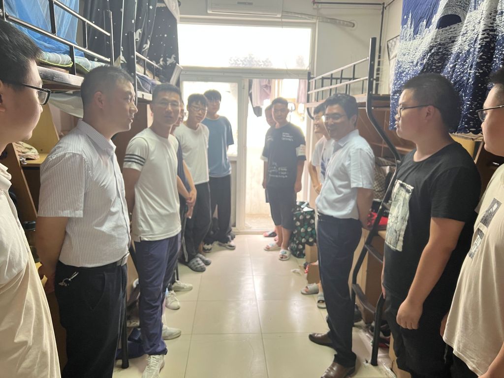 毕业生离校期间,学院领导班子、毕业班辅导员坚守岗位,认真做好为期半个月的校园夜间值班工作,确保毕业生离校期间安全稳定。6月22日,学院领导班子成员、系主任、毕业班辅导员深入毕业班宿舍进行走访。院党委书记汪俊武、院长高峰与毕业生亲切交谈,向即将迈进新的人生阶段的毕业生表达诚挚的祝贺,并就毕业生的就业情况进行了解,给予相应的建议。对于还在求职的毕业生,鼓励大家先就业再择业,增加求职机会,老师们耐心介绍了相关企业人才引进政策与人才待遇,希望同学们能够扩大就业选择,发挥自己的优势。最后,面对即将离校的同学们,老师们叮嘱他们注意交通安全,回家不忘报平安。