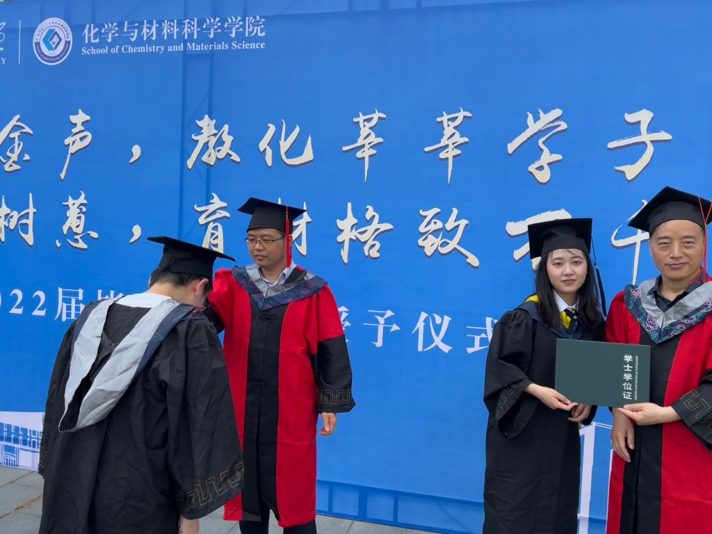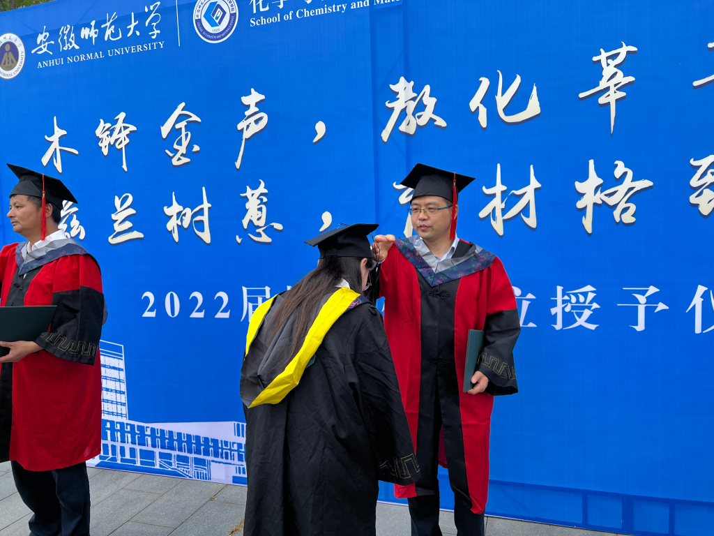 5月25日上午,学院2022届毕业生毕业典礼暨学位授予仪式在礼勤楼广场前举行。500余名毕业生身着学士服和硕士服,带着激动和喜悦的心情共赴盛典。为了给学生满满的仪式感,学校党委高度重视,院长高峰,副院长方臻、周双六,教授委员会副主任倪永红等多位老师亲临现场,为毕业生逐一拨穗正冠,学子们与导师握手、道谢,合影留念。从初入师大时的微凉初秋,到即将离港起航的炎炎盛夏,千百个日日夜夜的学海奋斗都凝结在流苏被拨至左前方的一瞬间,成为毕业生们未来征程的珍贵行囊。