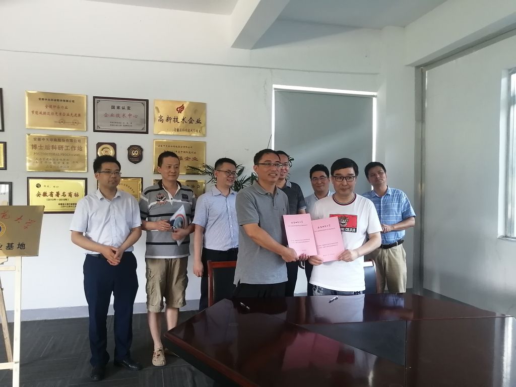 下午,熊宇杰一行来到了安徽中天纺织科技股份有限公司,中天科技总经理、董事长洪五林就公司情况作了简要介绍,熊宇杰介绍了学校情况和毕业生基本情况,汪俊武与中天科技总工吴奇华共同签署实习就业协议,熊宇杰与洪五林共同为实习就业基地揭牌,双方围绕人才培养模式、科技合作意向等方面进行了深入交流。期间,熊宇杰一行共同参观了中天科技研发检测中心。