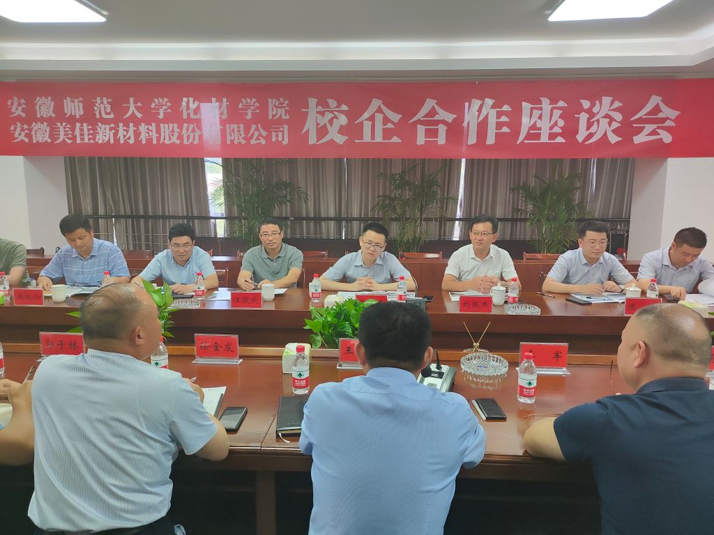 最后,熊宇杰一行前往了安徽美佳新材料股份有限公司参观,开展毕业生就业回访,进行校企合作交流座谈。公司董事长王方银介绍了公司基本情况以及目前在企业工作学生的工作、生活情况,对卡通色情