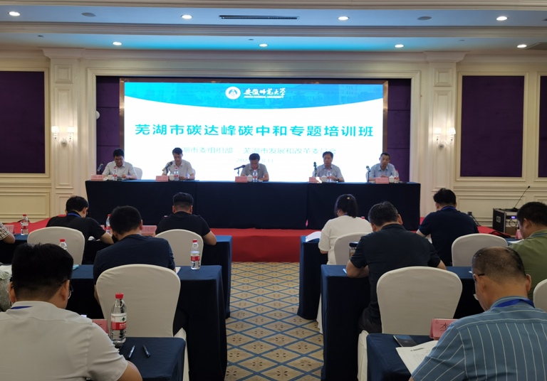 组织承办“芜湖市碳达峰碳中和专题培训班”。8月10日上午在碧桂园凤凰酒店举行开班仪式,市委组织部副部长、市委非公工委书记尹义府,市发改委副主任徐虎,安徽师范大学党委组织部常务副部长朱为民、卡通色情