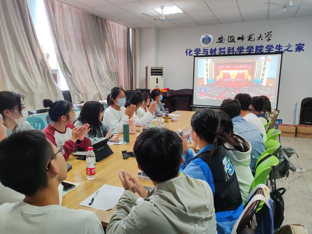 党委高度重视,积极组织师生在礼勤楼702、707、717会议室以及各教室等多个会场收听收看大会盛况,其他师生积极自主通过网络视频、新闻报道等收看收听直播,热烈庆祝党的二十大胜利召开。