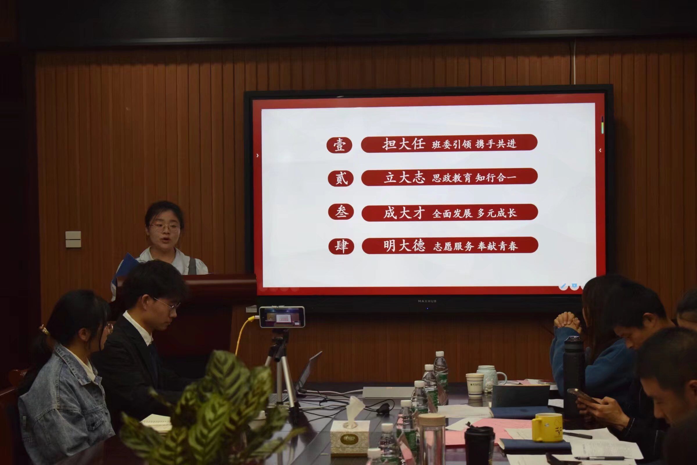 高度重视学生班级建设工作,本次评选汇报会旨在加强班级建设,营造浓厚的班级文化氛围,为各班级之间的交流学习搭建服务平台,促进学生个人的自我发展的同时增强学生的集体荣誉感和归属感,推动班集体建设不断提升、不断进步。