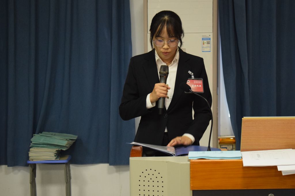 2019级应用化学专业的吴泓婧和2021级分析化学专业研究生张婷婷分别作上一届学生会、研究生会工作报告。