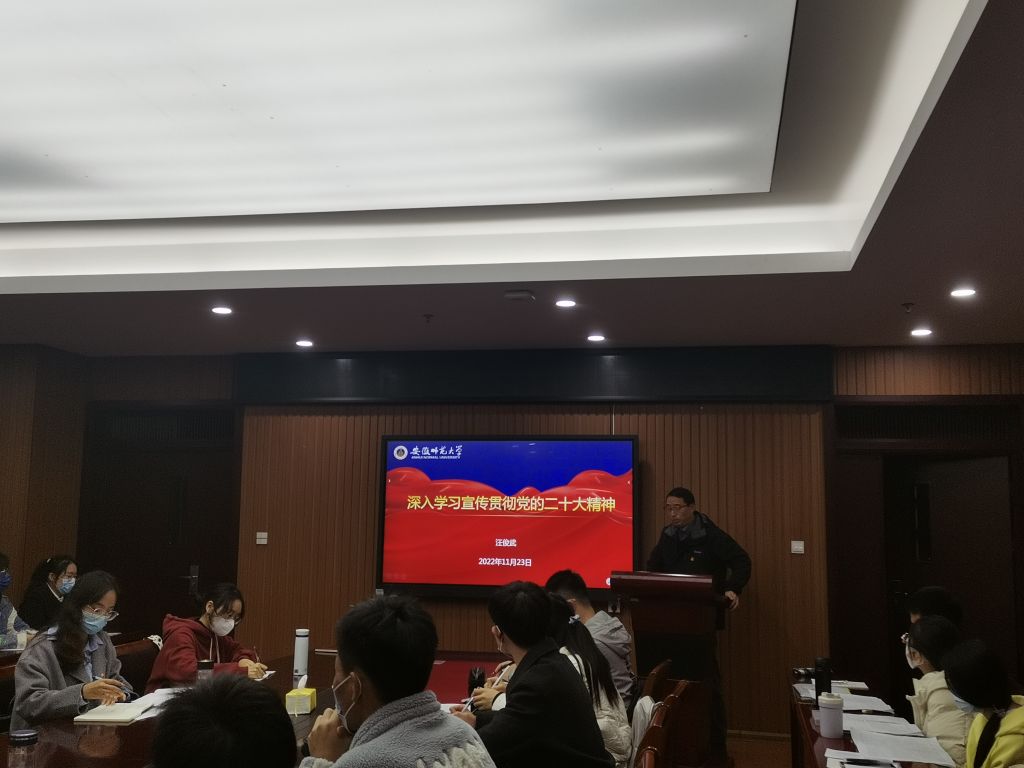 党委书记汪俊武为化学系本科生第一党支部、研究生第一党支部全体党员讲授“学习宣传贯彻党的二十大精神”专题党课,化学系本科生第一党支部书记吴钰濛主持。