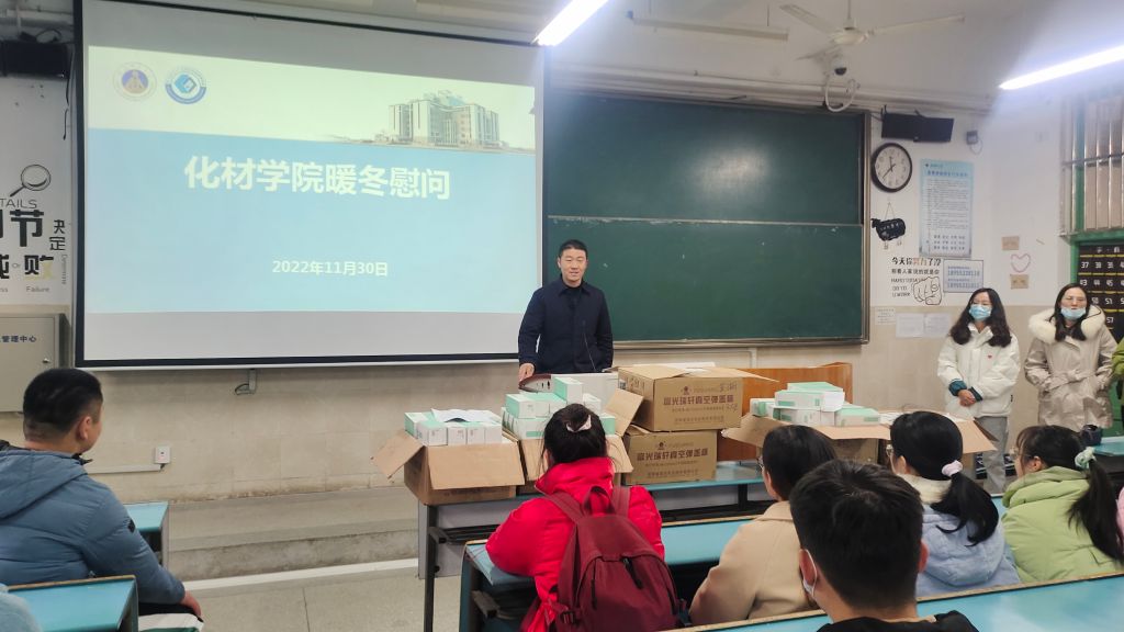 党委副书记李古州携辅导员在行知楼2010302教室为学院337名贫困生送来了暖暖的心意,利用课后时间为每一位同学们发放印有卡通色情