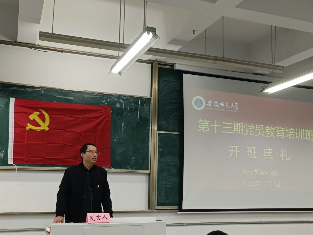 开班典礼在庄严的国歌中拉开序幕。梅冠东宣读了班级管理制度,要求学员严格遵守培训班的相关规定,强化纪律意识、表率意识和群众意识。学生党员代表2019级应用化学专业吴泓婧在发言中表示要不忘初心使命,不负青春韶华,勇担时代责任,努力做有理想、敢担当、能吃苦、肯奋斗的新时代中国青年。汪俊武在动员讲话中对全体学员提出要求,要端正态度,加强学习党的理论知识;要锤炼党性,深入学习二十大精神,在学懂弄通做实上下功夫;要严守纪律,发挥党员先锋模范作用。