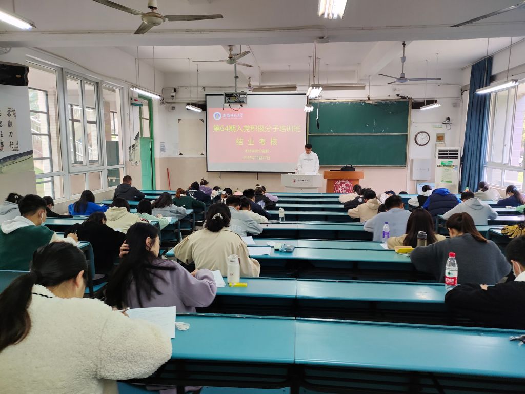 为增进入党积极分子对党的了解,提升政治素养,提高党性修养,11月26日至12月2日,学院分党校在礼勤楼702、707、938三个会场,通过线上线下和理论宣讲及实践锻炼相结合的方式,举办了第64期入党积极分子培训班。学院党委副书记、纪委书记李古州为开班典礼致辞,他希望全体入党积极分子要端正态度,深刻认识开展党的二十大精神学习培训的重要意义;要明确目标,努力提高培训效果;要严格要求,圆满完成本次培训学习任务。