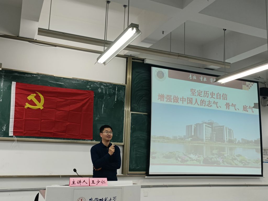 党委宣传部副部长王少仁以《坚定历史自信——增强做中国人的志气、骨气、底气》为主题,结合党的二十大报告,回顾了党的百年奋斗历程中创造的“四个伟大成就”和实现的“四个伟大飞跃”,分享了建党百年光辉历程中重大历史事件和革命英雄事迹,寄语青年党员们要以史为鉴,开创未来,撸起袖子加油干,坚定历史自信,增强做中国人的志气、骨气、底气。