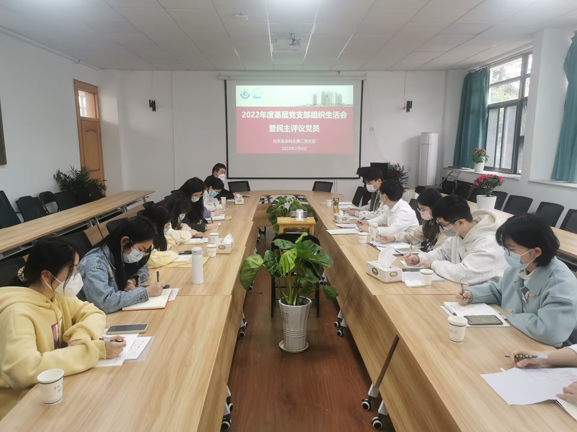 本网讯(化学系本科生第二党支部王宇阳)3月8日下午,化学系本科生第二党支部在学苑北楼9号楼205会议室召开2022年度党支部组织生活会暨民主评议党员大会,支部全体党员参加了会议,会议由支部书记陶勇主持,学院党委副书记李古州列席指导。