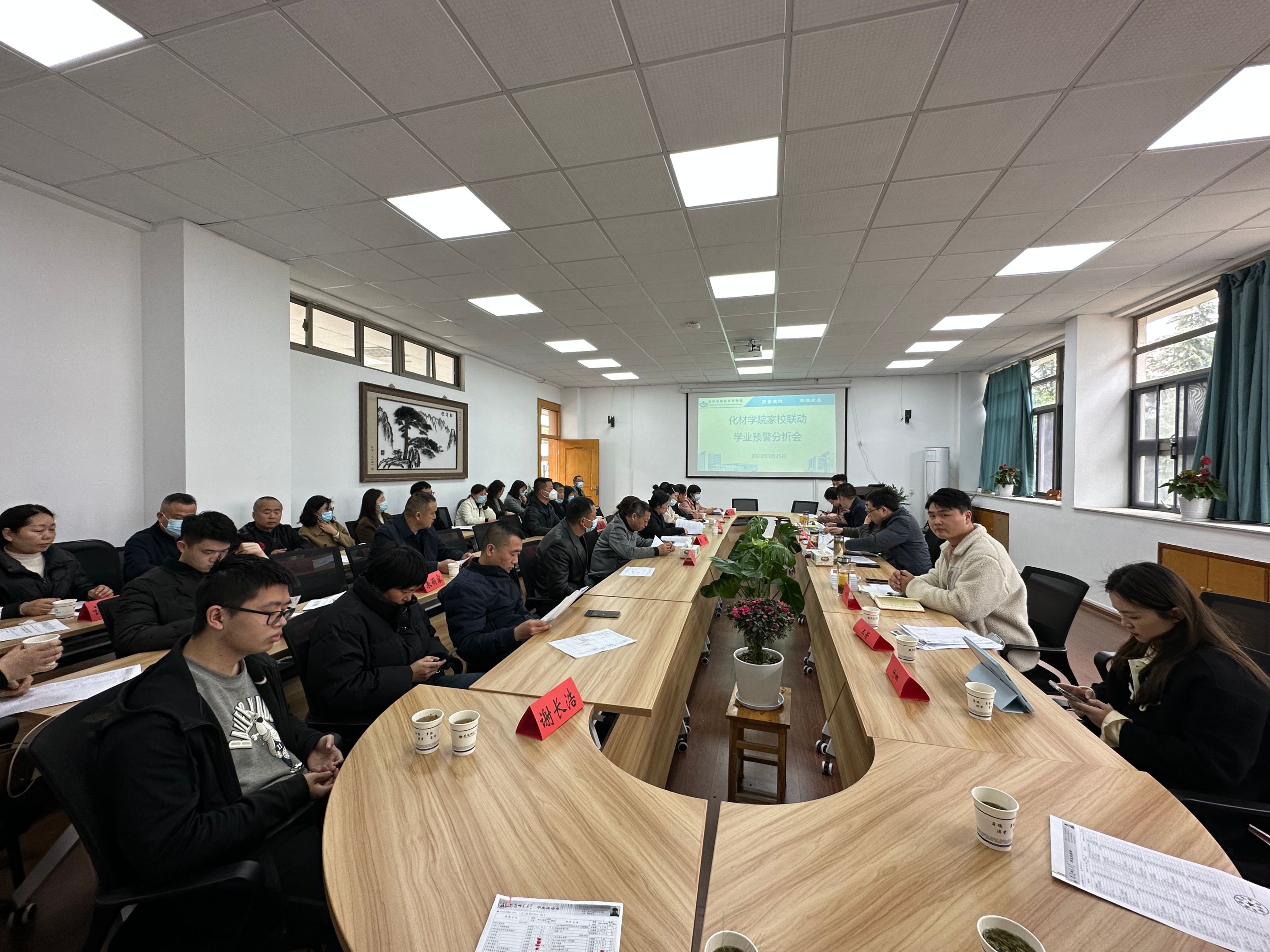 在学苑北楼9号楼205会议室召开2023年家校联动学业预警分析会。学院院长高峰、教学副院长方臻、各年级辅导员及大二至大四年级学业预警的学生家长出席会议,会议由学院党委副书记李古州主持。