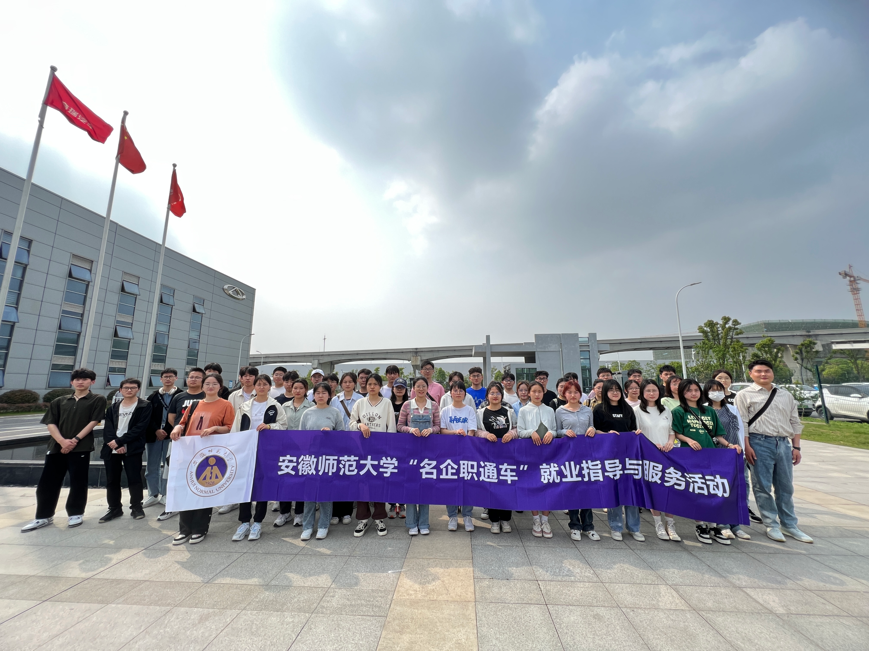 2019、2021级50名学生搭乘“名企职通车”到奇瑞新能源汽车股份有限公司进行参观。