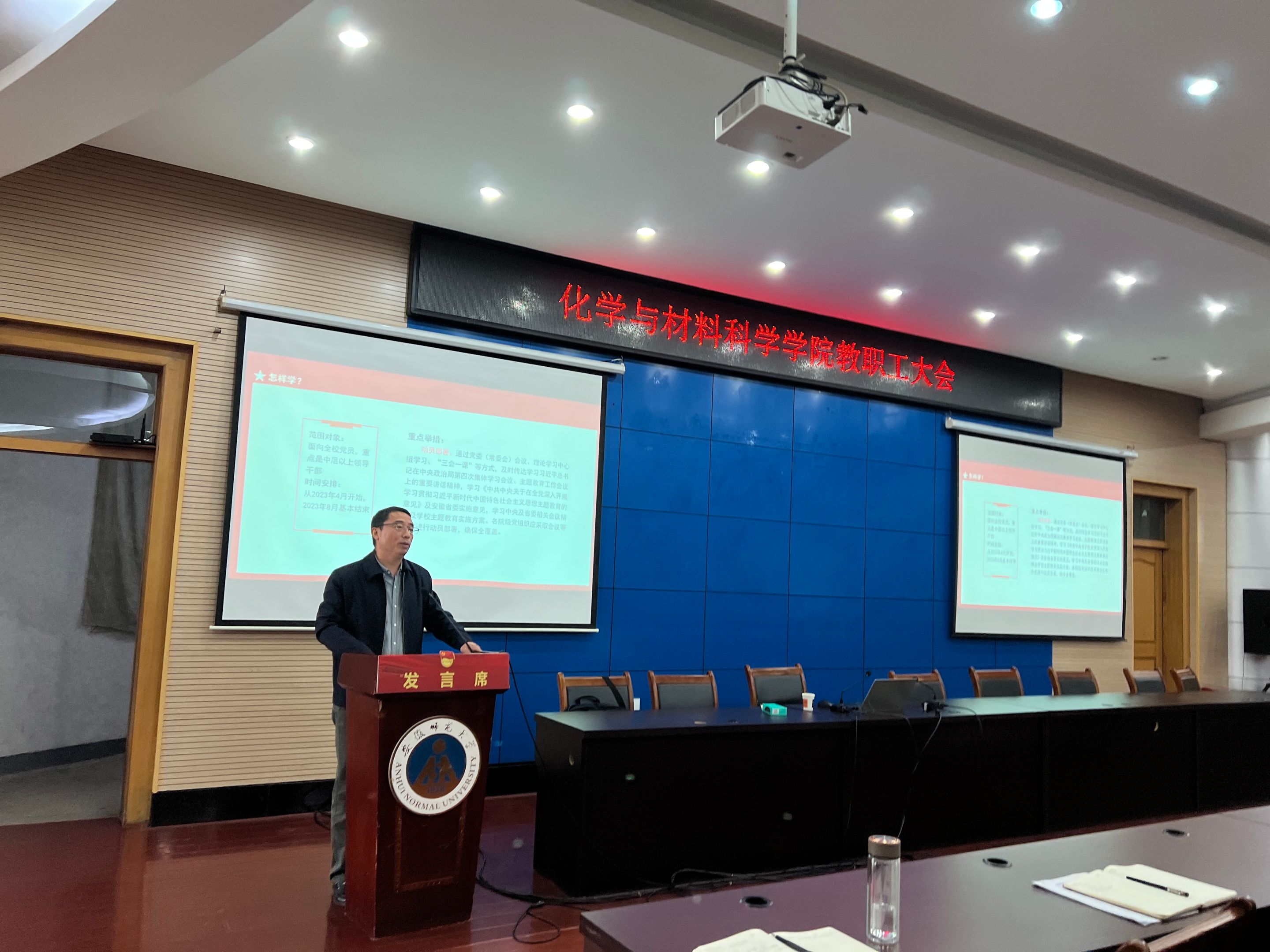 汪俊武传达学习省委、学校主题教育动员大会精神,从“重大意义”“目标要求”“方法举措”三个方面详细解读了学校学习贯彻习近平新时代中国特色社会主义思想主题教育实施方案,并对学院主题教育工作进行部署。