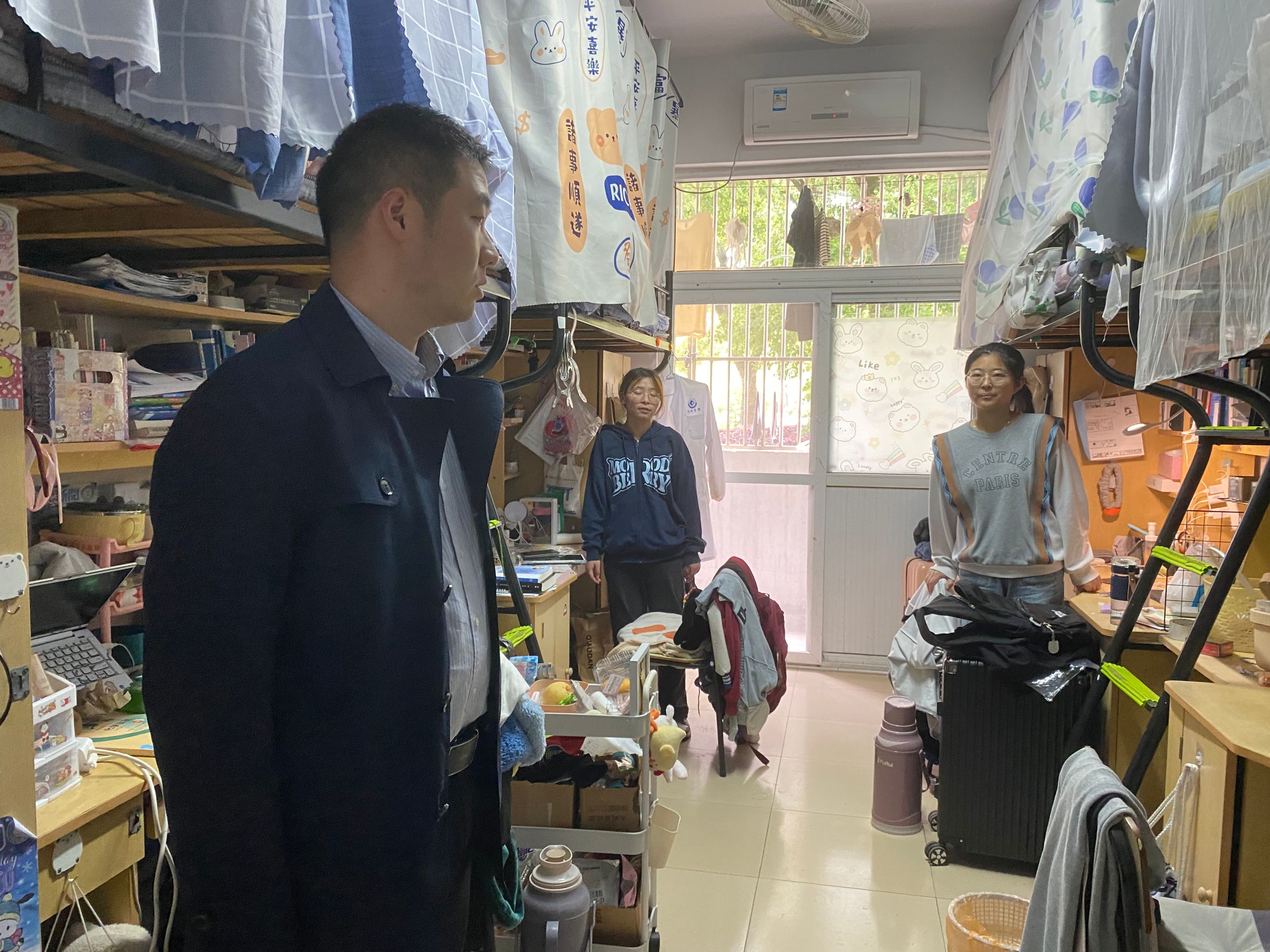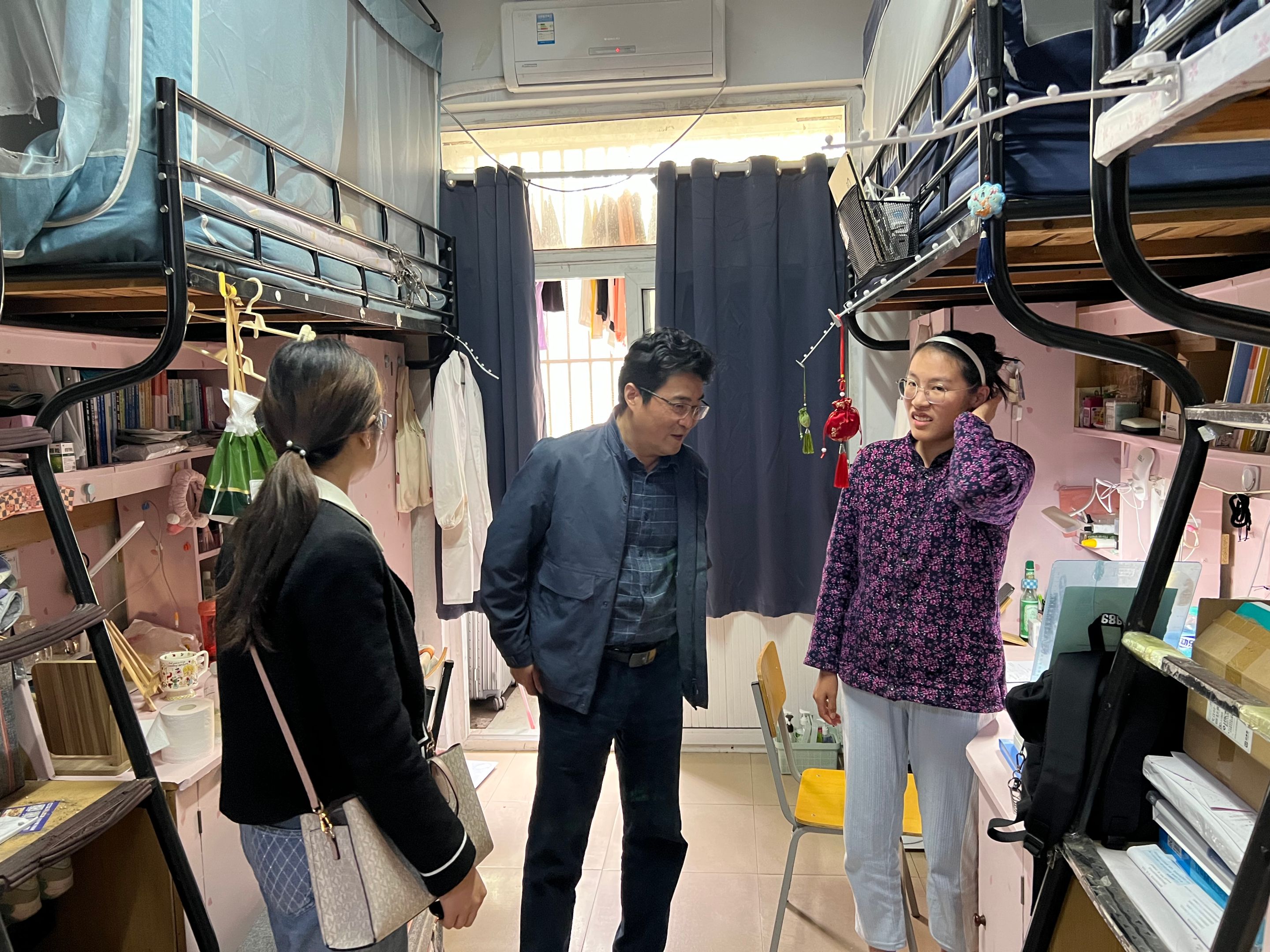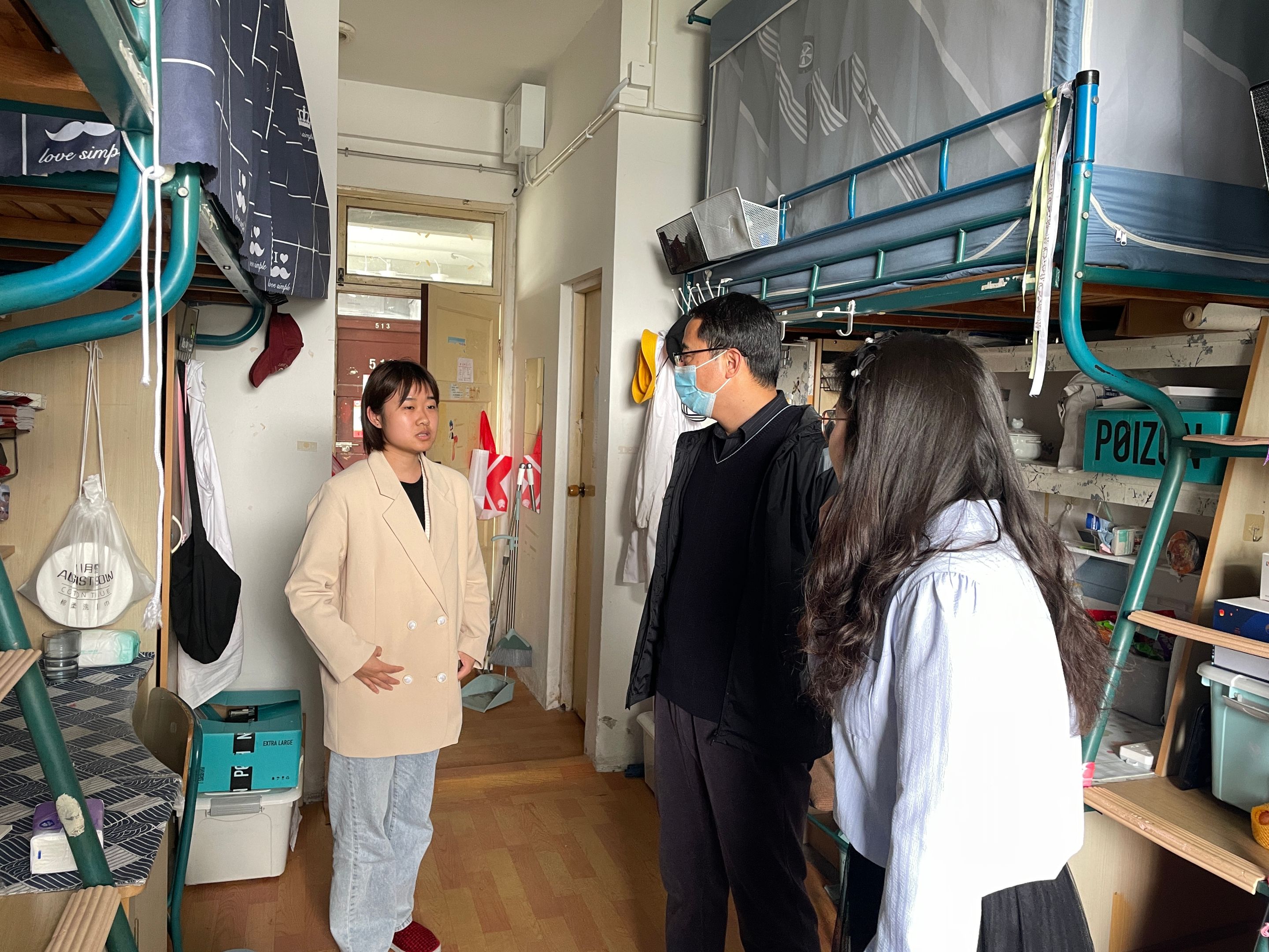 院领导老师分头到达相关宿舍,与宿管人员进行沟通交流,了解近期学生在宿舍的基本情况和特殊问题并逐层逐间展开走访与检查,查看学生宿舍的卫生环境和用电安全等情况,对宿舍的安全隐患进行了全方位排查,并叮嘱同学们要牢固树牢并自觉强化安全意识,注意在校期间的用电、饮食等。期间,院领导和老师与同学们亲切交谈,听取了学生的实际诉求,及时有效地发现并解决学生的实际问题,增强了学生的幸福感和归属感。学生们纷纷表示,深切感受到了学校和学院的关怀与温暖,并表示会牢记嘱托,遵守学校规定,以实际行动维护宿舍安全环境。