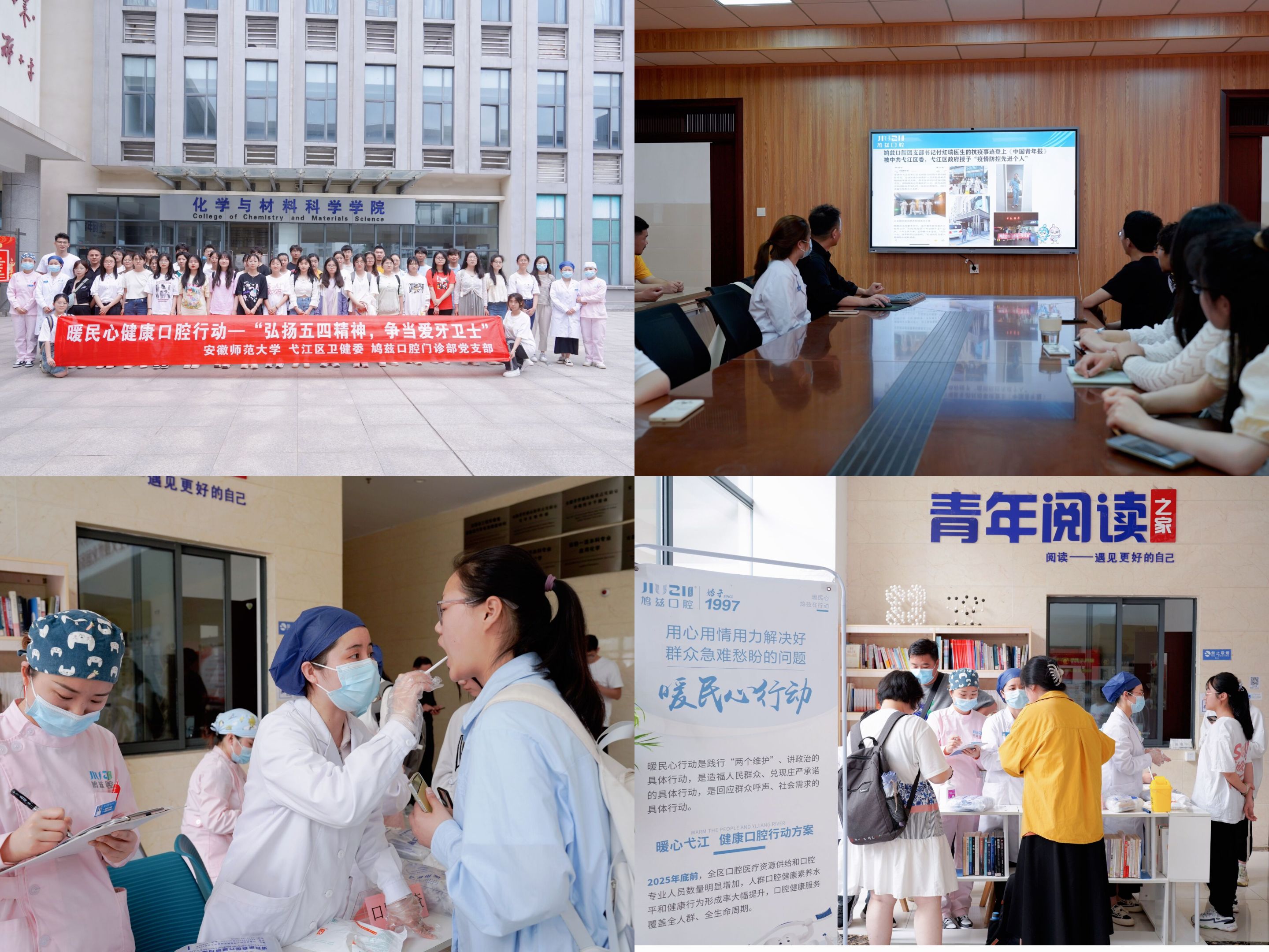 口腔义诊强志愿。为积极响应“暖民心行动”的号召,将健康口腔行动进校园活动与高校结合,提升高校师生口腔健康意识和水平,提高口腔疾病防治知识的知晓率,4月24日至5月4日,学院联合鸠兹口腔医院开展“弘扬五四精神,争当爱牙卫士”--暖民心健康口腔行动走进安徽师范大学口腔科普、义诊宣传周主题活动。5月4日下午,鸠兹口腔医生在卡通色情