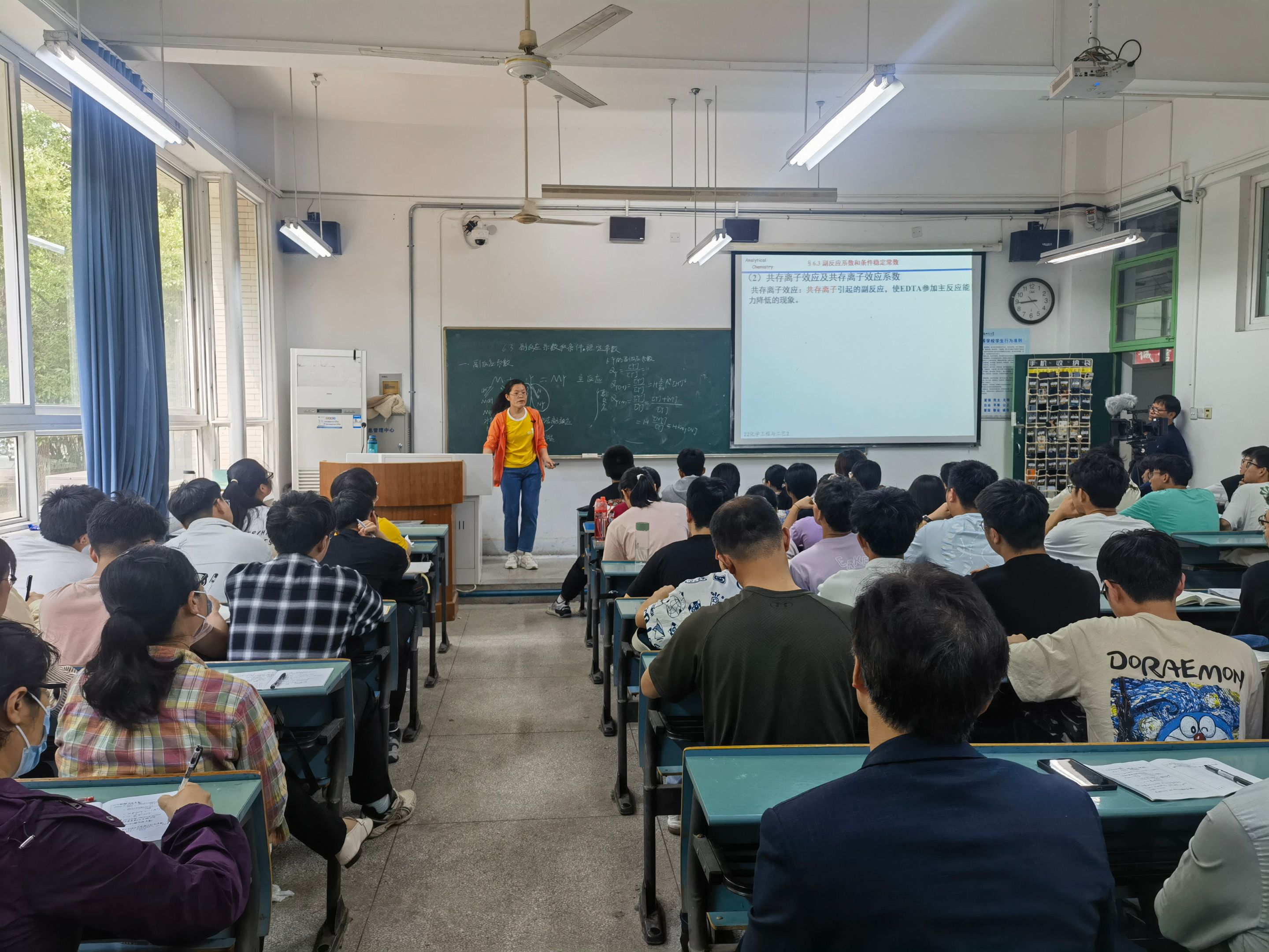 张浩、郁妍)为进一步提升分析化学课程的教学质量,促进本专业学生的学习与发展,2023年5月4日,凌平华副教授在花津校区行知楼2070104召开了分析化学公开课,授课主题为副反应系数的公式,授课对象为2022级化学工程与工艺专业2班全体学生,学院领导、校督导团、院督导组及部分学院老师观摩了本次公开课。