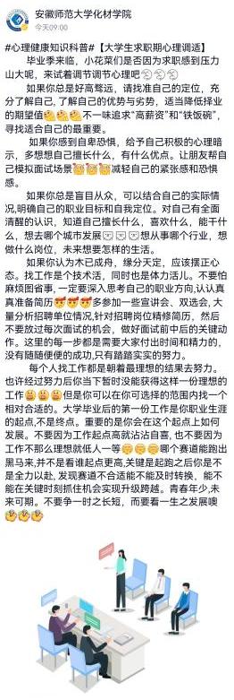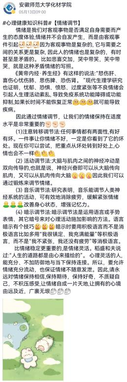 知识科普,理论引行动。学院通过多种途径了解和收集到同学们当下所面临的诸多烦恼,并通过官Q推出一系列心理健康知识科普以及情绪调节的方法,向同学们传授丰富的心理健康知识,以此提高学生们的知识水平,同时拓展学生们的视野。