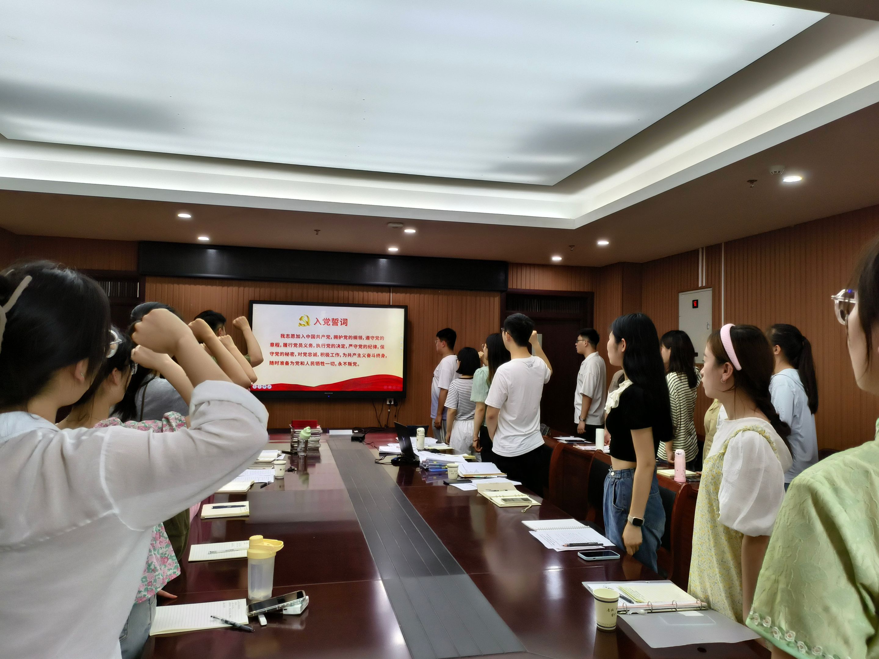 支委王宇阳带领支部全体党员重温入党誓词,在铿锵的誓言中,党员们的初心受到洗礼,理想信念更加坚定。支部也为毕业班全体党员送上一本红色学习笔记本和一张政治生日卡片,希望毕业生党员铭记入党初心,牢记党员使命,学习永无止境。