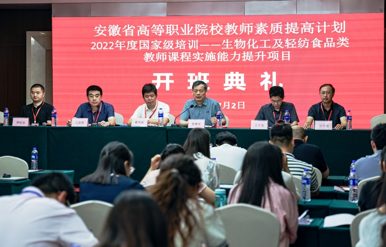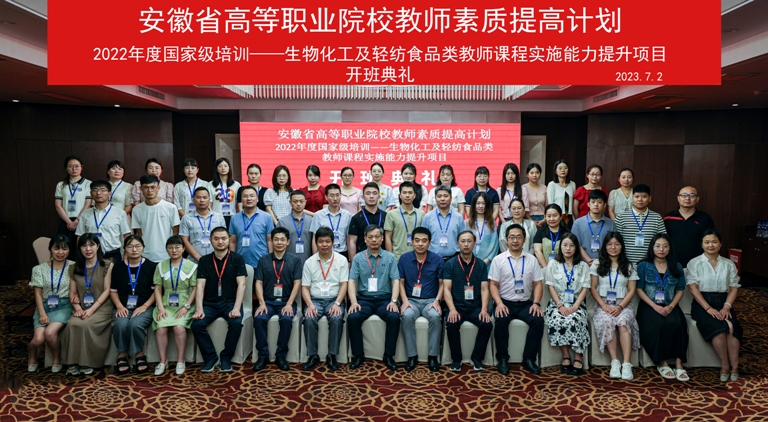 2023年7月2日上午,由安徽省教育厅主办、安徽师范大学承办的2022年“国培计划”生物化工与轻纺食品类教师课程实施能力提升项目开班仪式在芜湖市金鹰尚美酒店举行。安徽省高等学校师资培训中心常务副主任袁德水、安徽师范大学生命科学学院党委书记蒋学波、副院长王立龙、化工与轻纺类教师课程实施能力提升培训项目执行主席兼国培班班主任罗时忠、综合服务保障人员张年荣及全体学员参加了开班仪式,会议由卡通色情