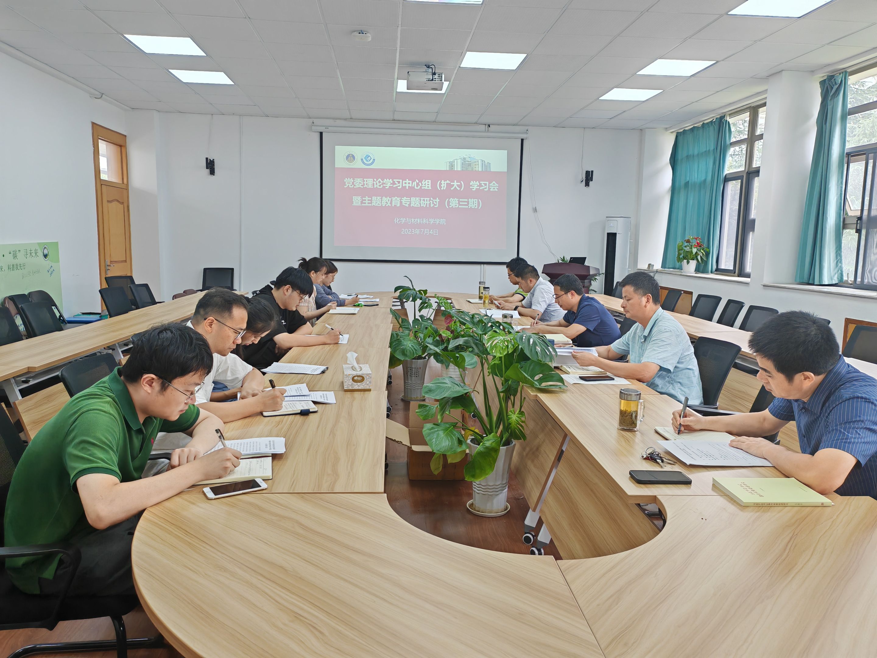 在学苑北楼9号楼205会议室召开党委理论学习中心组(扩大)学习会暨学习贯彻习近平新时代中国特色社会主义思想主题教育(第三期)专题研讨,学院党委委员、纪委委员、党支部书记代表参加学习会。会议由学院党委书记汪俊武主持。
