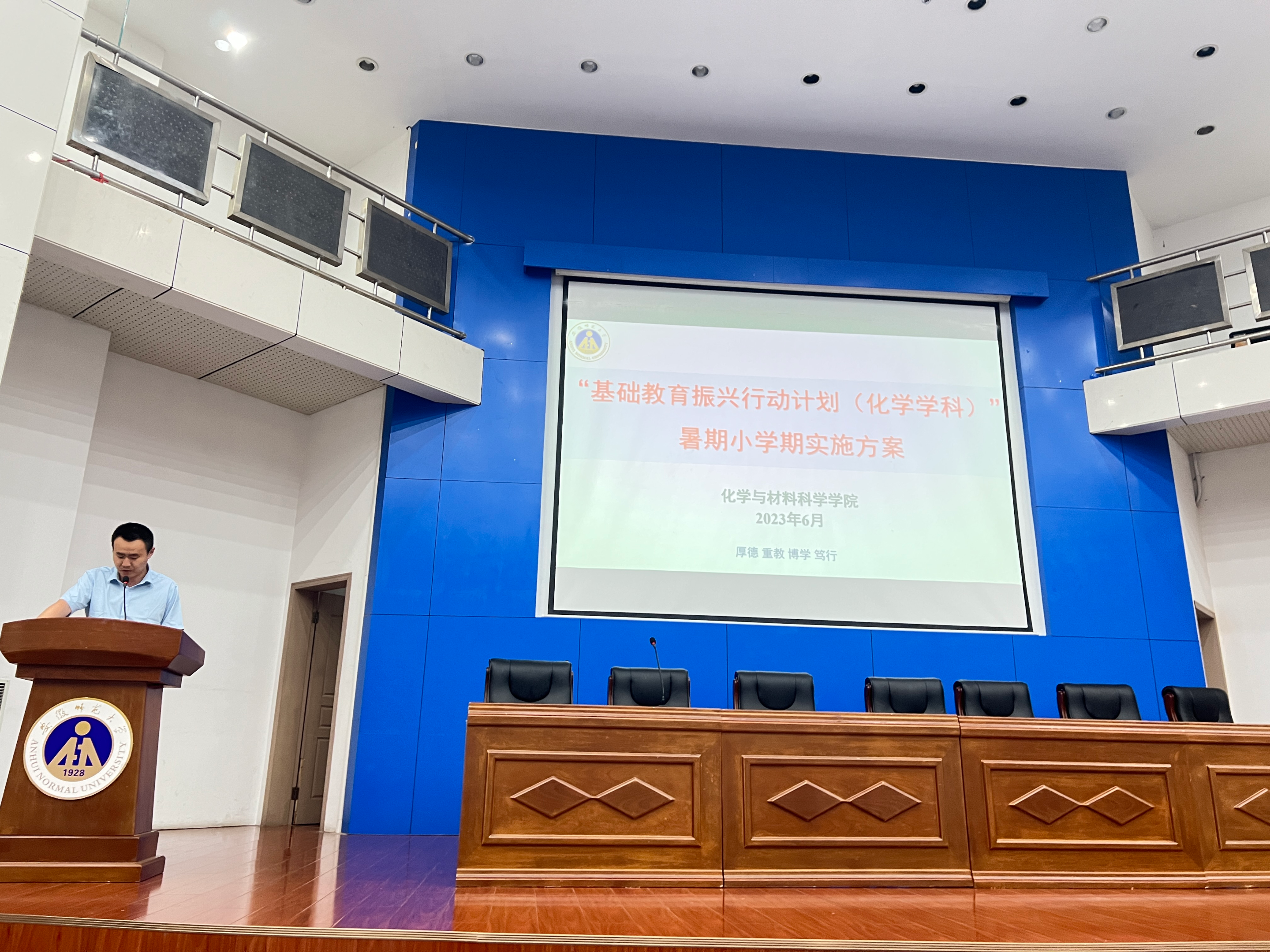副院长方臻主持。会上,化学系系主任陈郑老师针对化学学科暑期小学期实施方案,从总体原则、课程考核、组织实施等方面进行了详细解读。针对同学们的疑问,与会领导老师一一给与了解答,并强调本次暑期小学期旨在加强学生对中学化学教学内容的理解与知识体系的重构,希望化材学子们能够认真对待并积极参与。