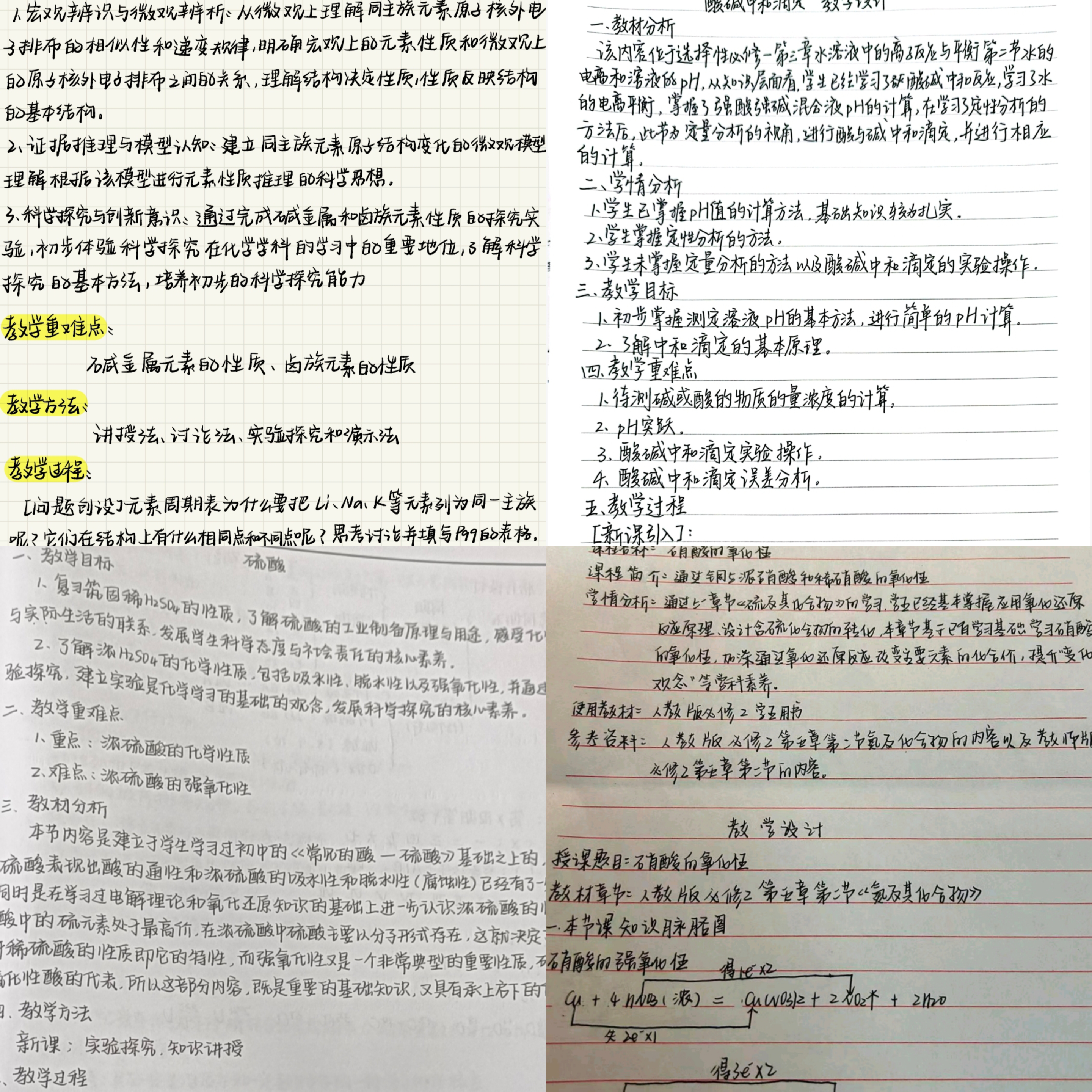 教案与粉笔板书是师范生重要的基础技能,比赛采用评委老师集中评审方式开展。各位同学踊跃参加,一笔一划间尽是对化学教学的思考与想法,本次教案展评活动加强了同学们教学设计基本功的训练,引导同学们认真学习现代教育理论,钻研课程标准与教材,积极探索教法改革。“三尺讲台存岁月,一支粉笔写春秋。”写好粉笔字是每一位师范生必须具备的基本功之一,也是课堂教学所必备的能力。同学们将身心融于笔端,尽情挥洒三寸粉笔,一幅幅书法作品在黑板上呈现出来,有的提按分明、遒劲有力;有的行云流水、疏朗大方;有的结构严谨、形神兼备。一横一竖,一撇一捺,笔笔显功力,字字显神韵。