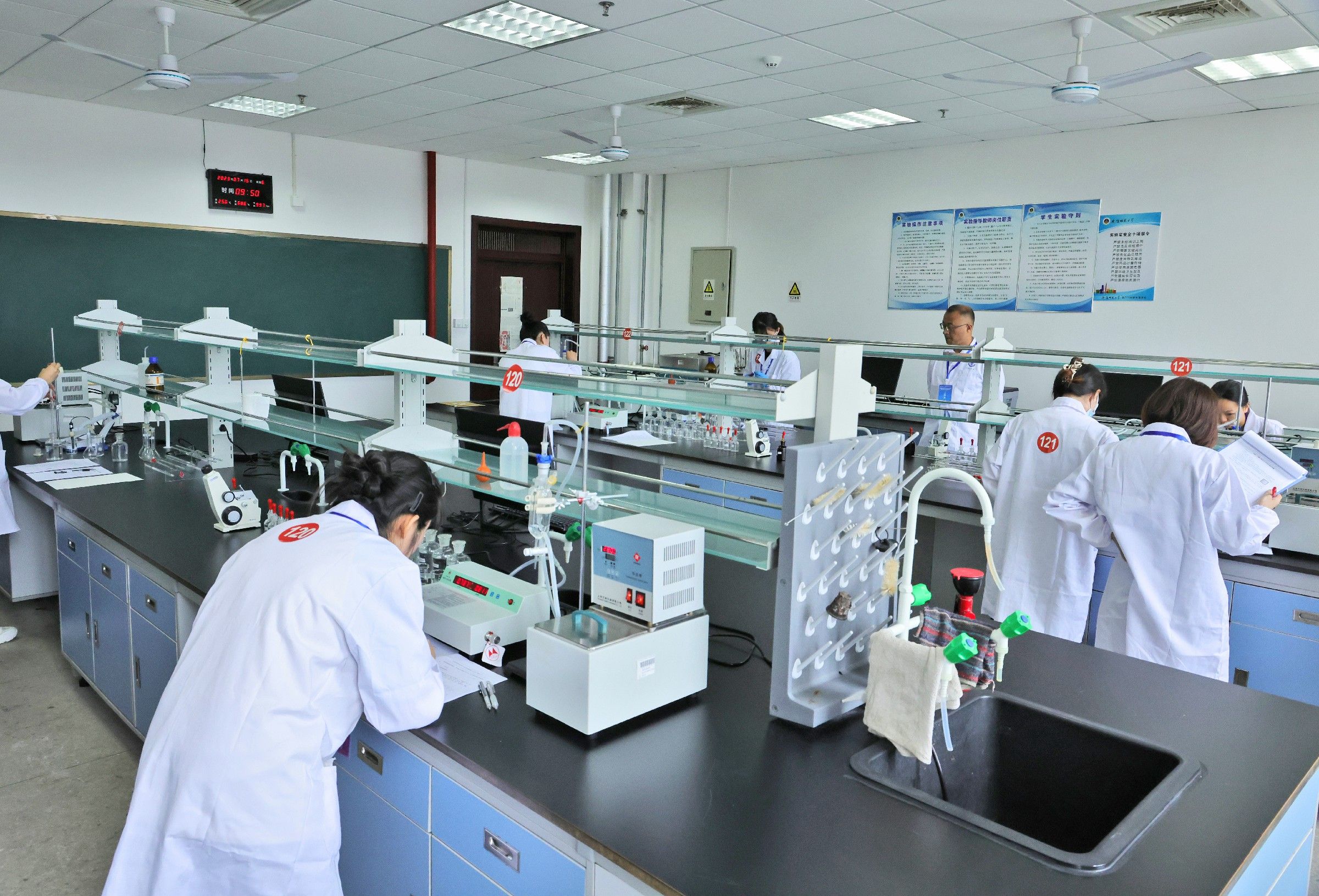 本次赛会包括大学生化学实验竞赛和化学实验教学与实验室建设研讨会两个部分,其中实验竞赛分为笔试和实验操作。7月15日,实验操作竞赛在礼勤楼举行。7月16日上午,笔试在行知楼2号教学楼举行。比赛期间,竞赛组委会到现场进行了观摩检查。