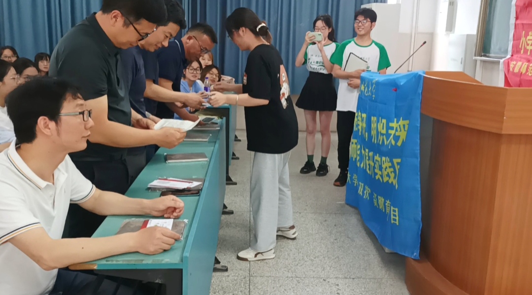 团队部分成员代表参与小学期的各位同学,向五位名师赠送安徽师范大学文创笔记本以作留念。一百张手写明信片承载着同学们两周的回忆和感激,被送到各位老师的手中。一笔一划印刻着同学们对各位老师的喜爱和不舍,字里行间萦绕着杏坛余香。王成老师用“感动、和谐、融洽”三个词概括了他在两周时间内的感受,并深情寄语同学们要将教育当做终身事业做到最好。任峰老师也表示:同学们应当始终践行“厚德、重教、博学、笃行”的校训,锲而不舍、永争先锋!