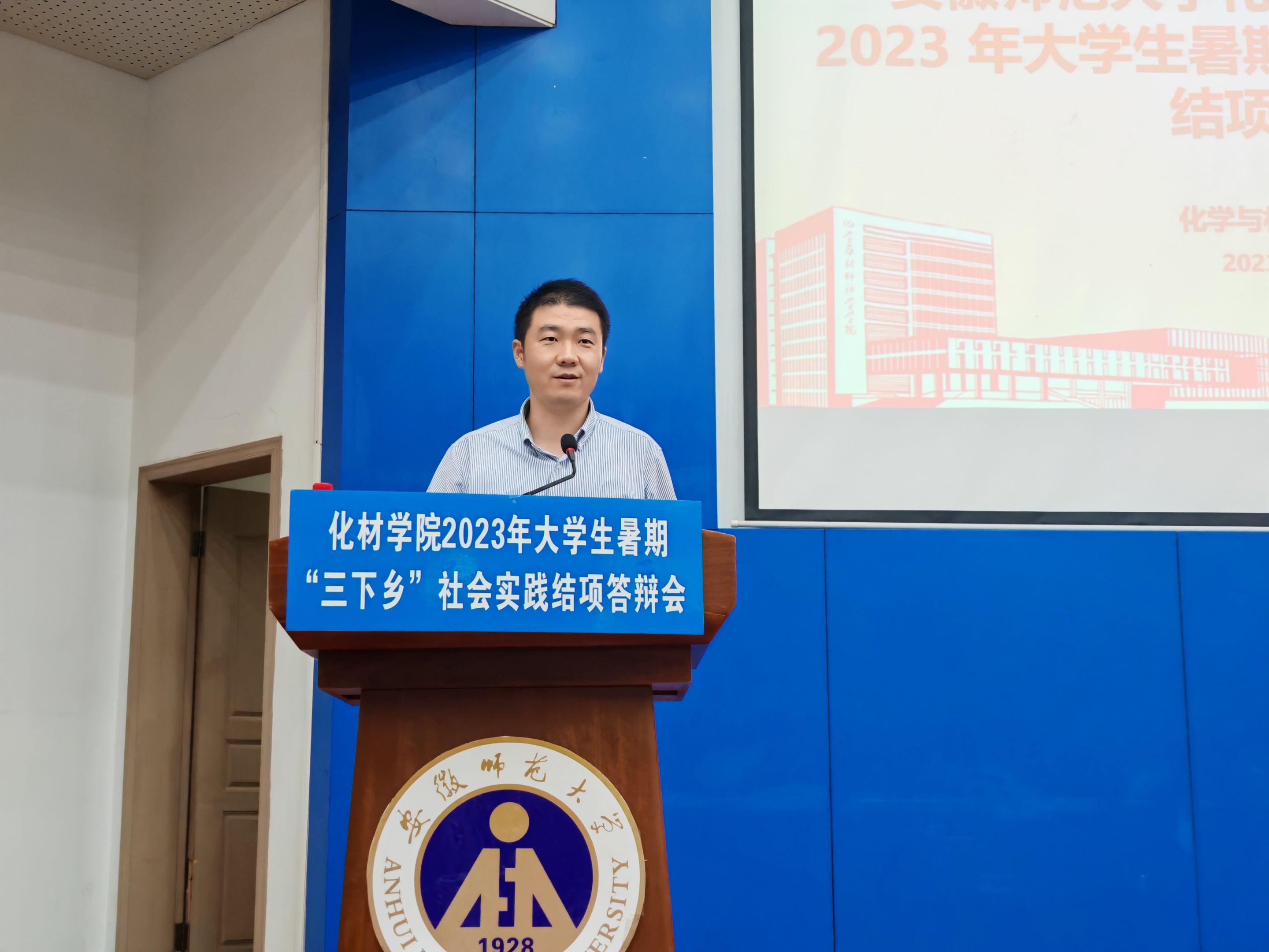 李古州在总结发言中肯定了化材学子们的实践成果和艰辛付出,学院师生克服诸多困难,组织规范、重点突出、内容丰富、形式多样、成效明显。希望同学们能认真总结好此次社会实践,进一步创新社会实践活动内容和形式;进一步加大宣传、展示社会实践亮点特色;进一步固化成果、展现社会实践育人成效。