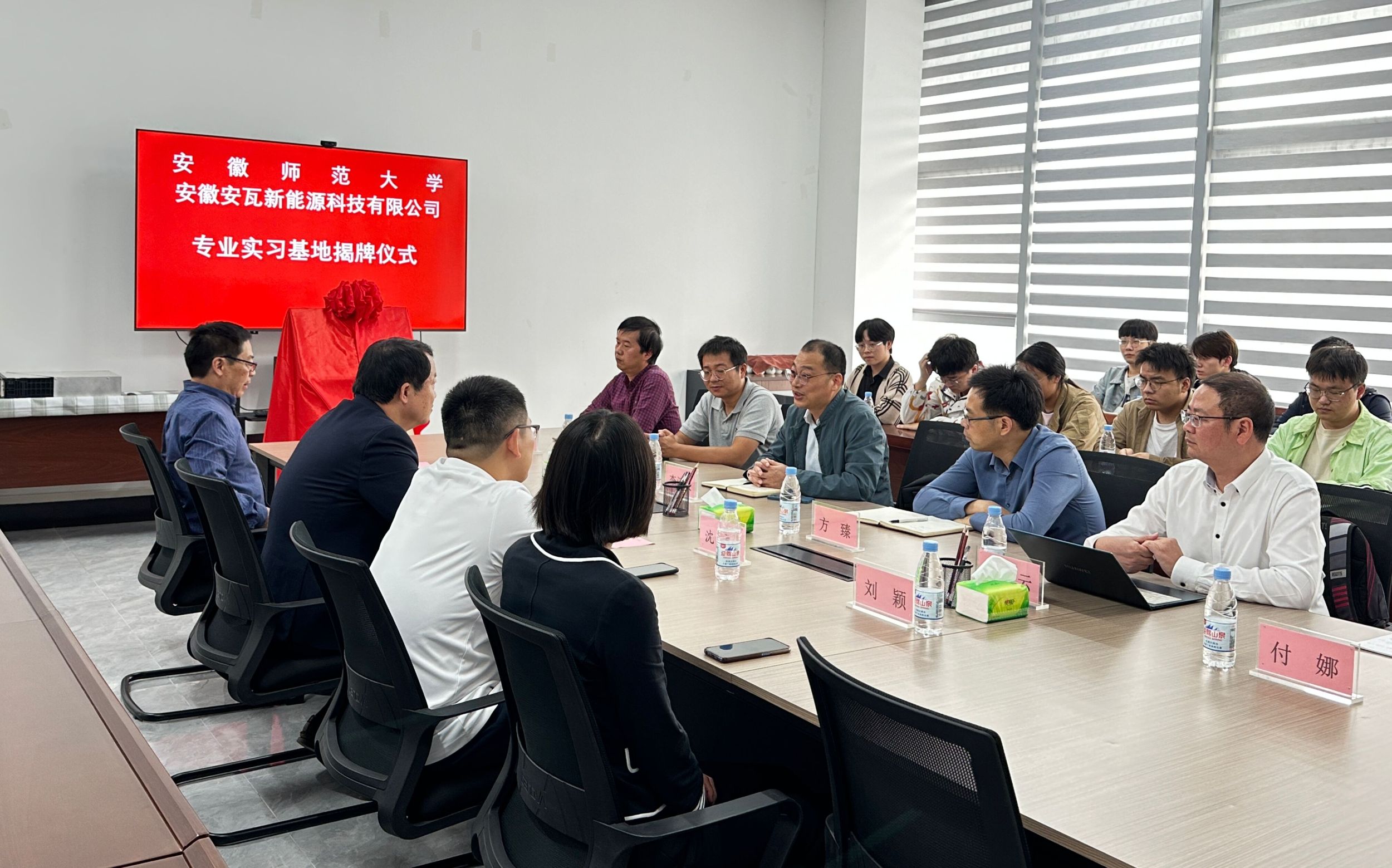 于安徽安瓦新能源有限公司会议室举行专业实习基地揭牌仪式。安瓦新能源有限公司常务副总经理张志伟、副总经理曹建齐、副总经理沈赟、IT与流程部总监刘颖,安徽师范大学教务处副处长李汪根、实践科科长程啸天、卡通色情