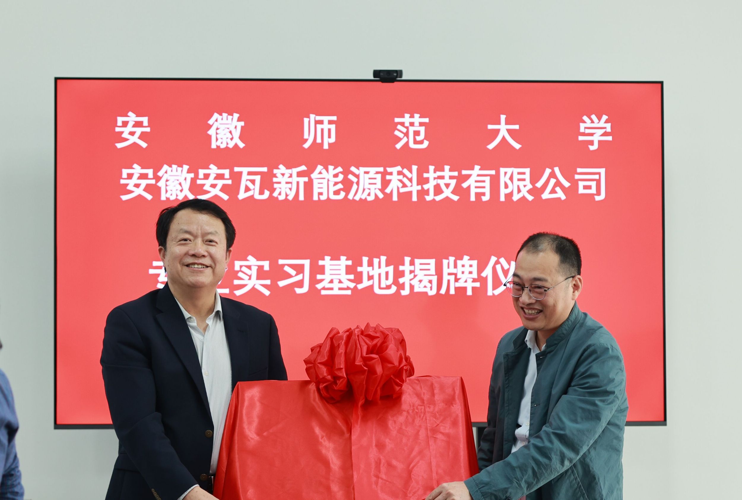 下午3点30分,张志伟与李汪根携手为“安徽师范大学安徽安瓦新能源科技有限公司专业实习基地”隆重揭牌。