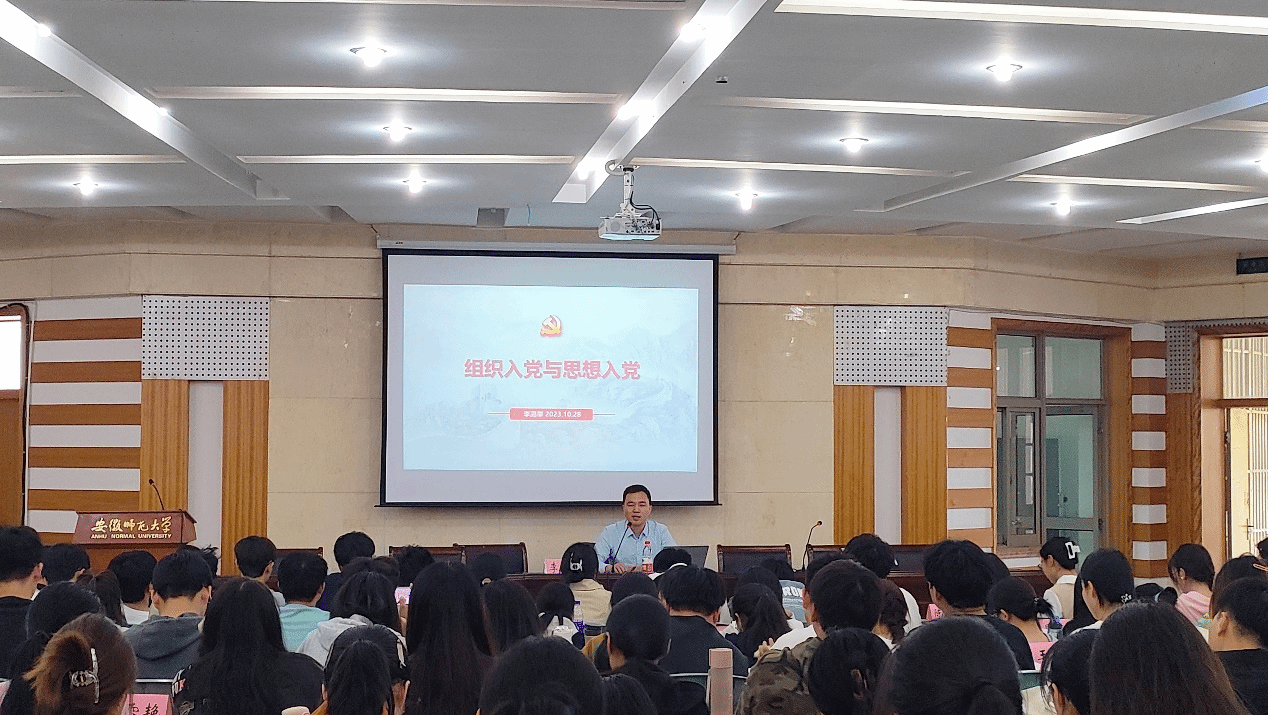 思想入党,树牢意识。党委组织部组织科科长李高举为学员们带来《思想入党和组织入党》专题报告。他以“组织入党一生一次,思想入党一生一世”引入,介绍了入党的基本程序,递交入党申请书,入党积极分子、发展对象培养、预备党员及转正五个阶段,并对其中的要注意的问题做简单的介绍,提醒同学们每半年积极主动的向支部提交思想汇报。以生动案例激励同学们思想上要树立正确的入党信念,坚定理想信念不动摇,从严从实开展党内政治生活,积极向党组织靠拢,不断严格要求自我。希望全体同学要积极响应习近平总书记的号召,端正入党动机,增强做中国人的志气、骨气和底气,勇担时代责任,志存高远、脚踏实地。