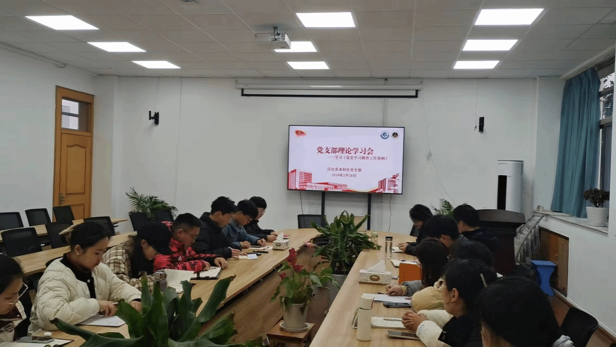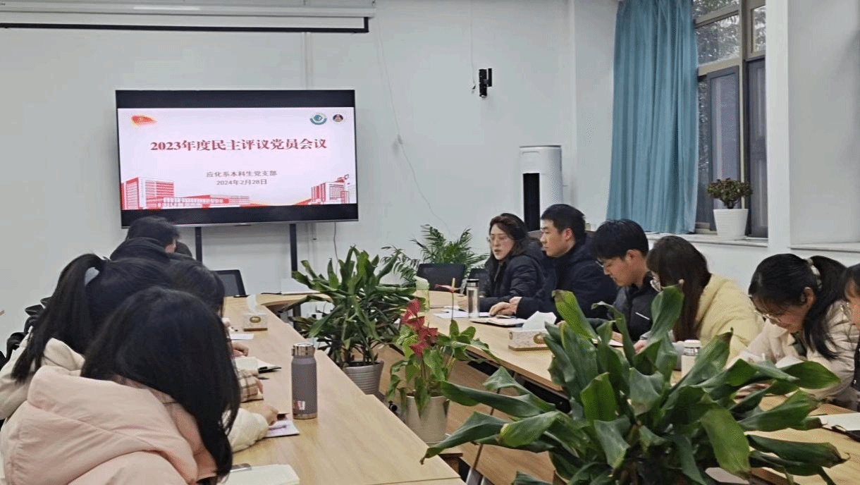 应化系本科生党支部在学苑北楼205会议室开展政治理论学习暨党员民主评议,学院党委副书记李古州参加会议,会议由支部书记王芳主持。
