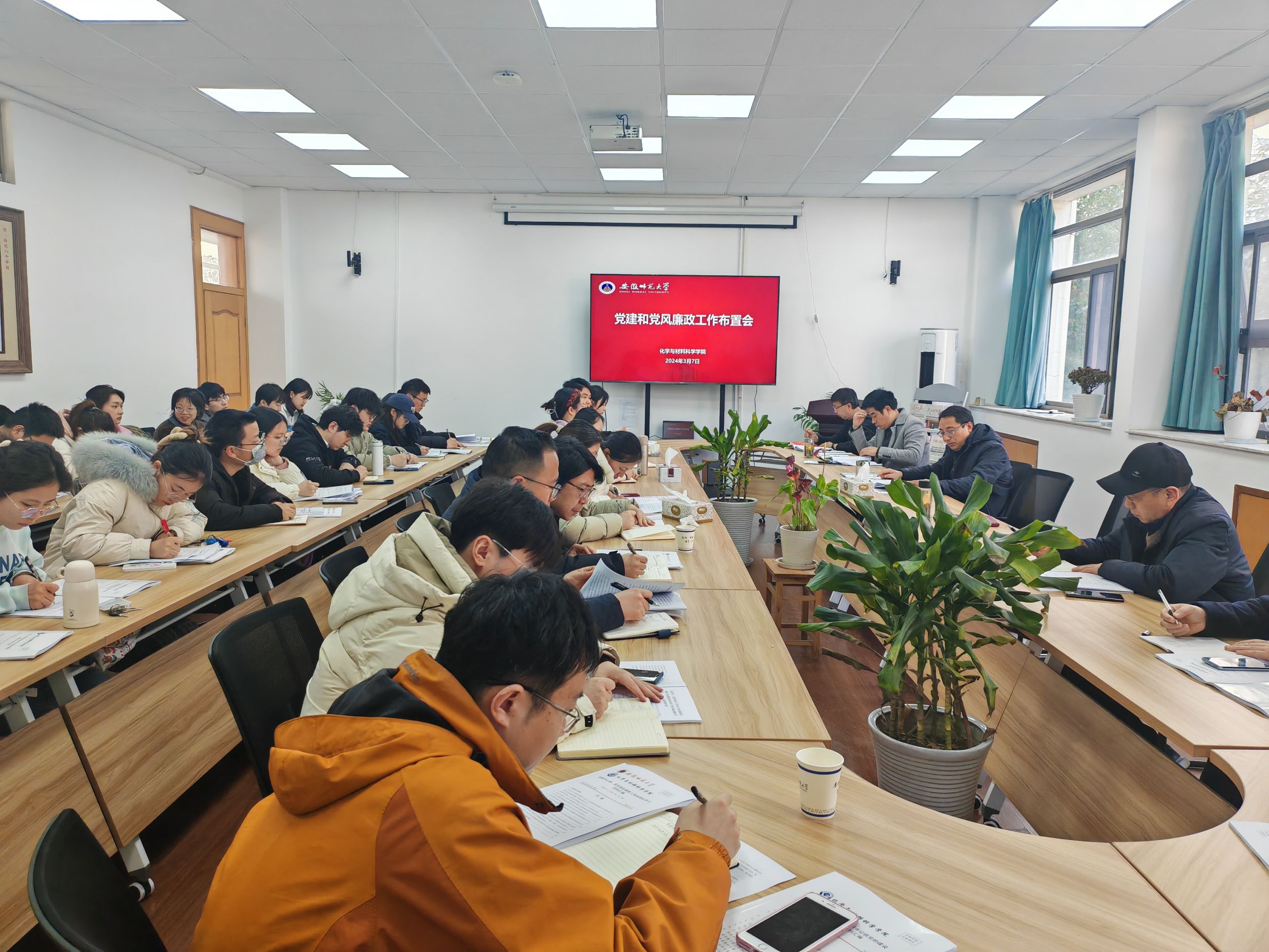 在学苑北楼9号楼205会议室召开新学期党建和党风廉政建设工作布置会,开展专题警示教育,谋划新学期党建工作,学院党委委员、纪委委员、党支部书记及部分支委参加会议,会议由学院院党委书记汪俊武主持。