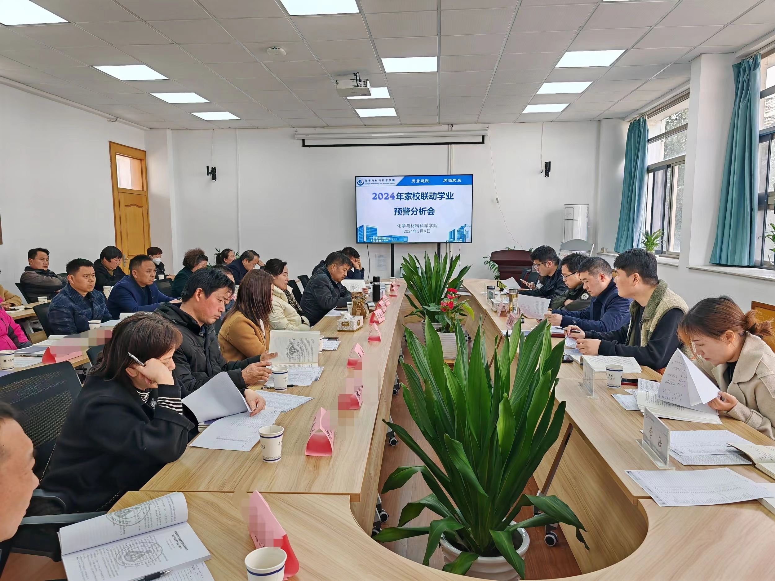 在学苑北楼9号楼205会议室召开2024年家校联动学业预警分析会。学院教学副院长方臻、各年级辅导员及2021、2022级学业预警的学生家长出席会议,会议由学院党委副书记李古州主持。