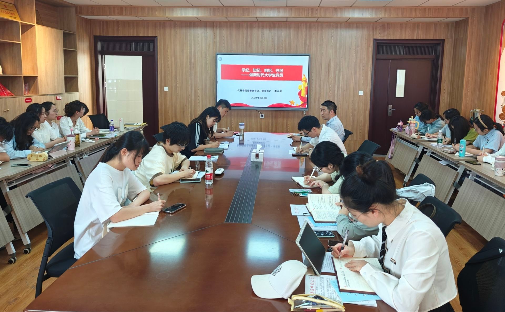 大会第四阶段,支部书记梁成围绕党员廉洁教育开展专题学习,与会的党员逐一讨论了对廉洁教育的看法和感悟,纷纷表示深刻领悟到了廉洁的重要性,在今后的学习和生活中,将积极遵守廉洁纪律,争做有品德、有道德、有良知的化材学子,以实际行动和担当践行一名党员的使命。