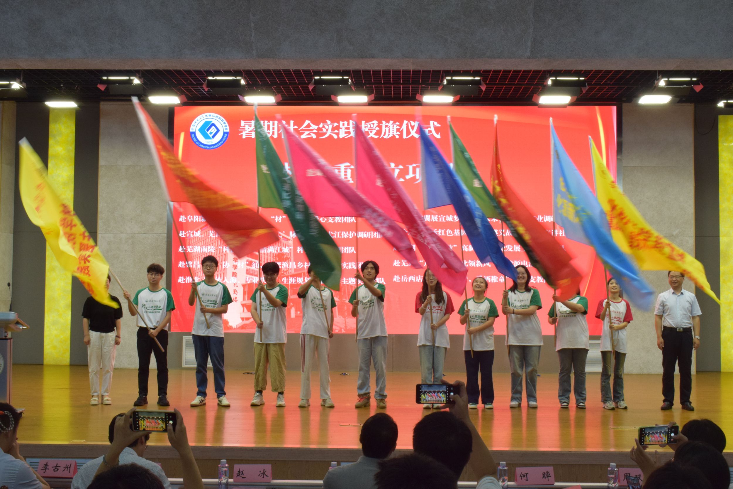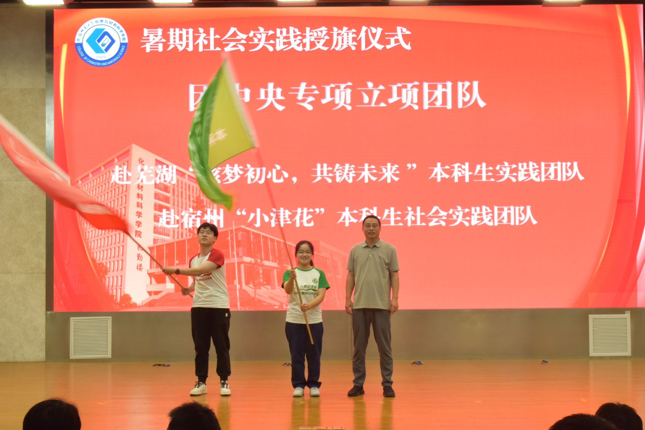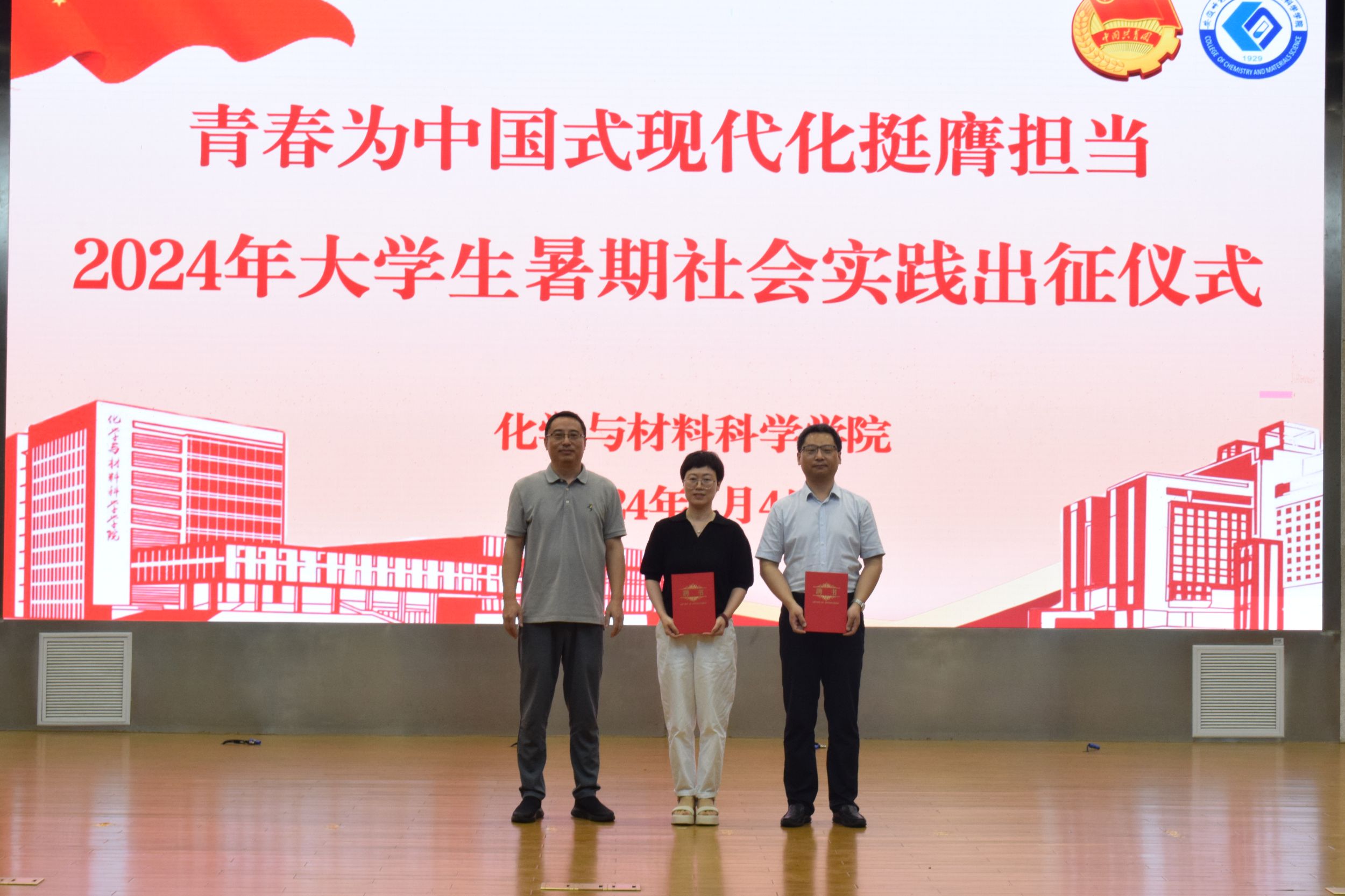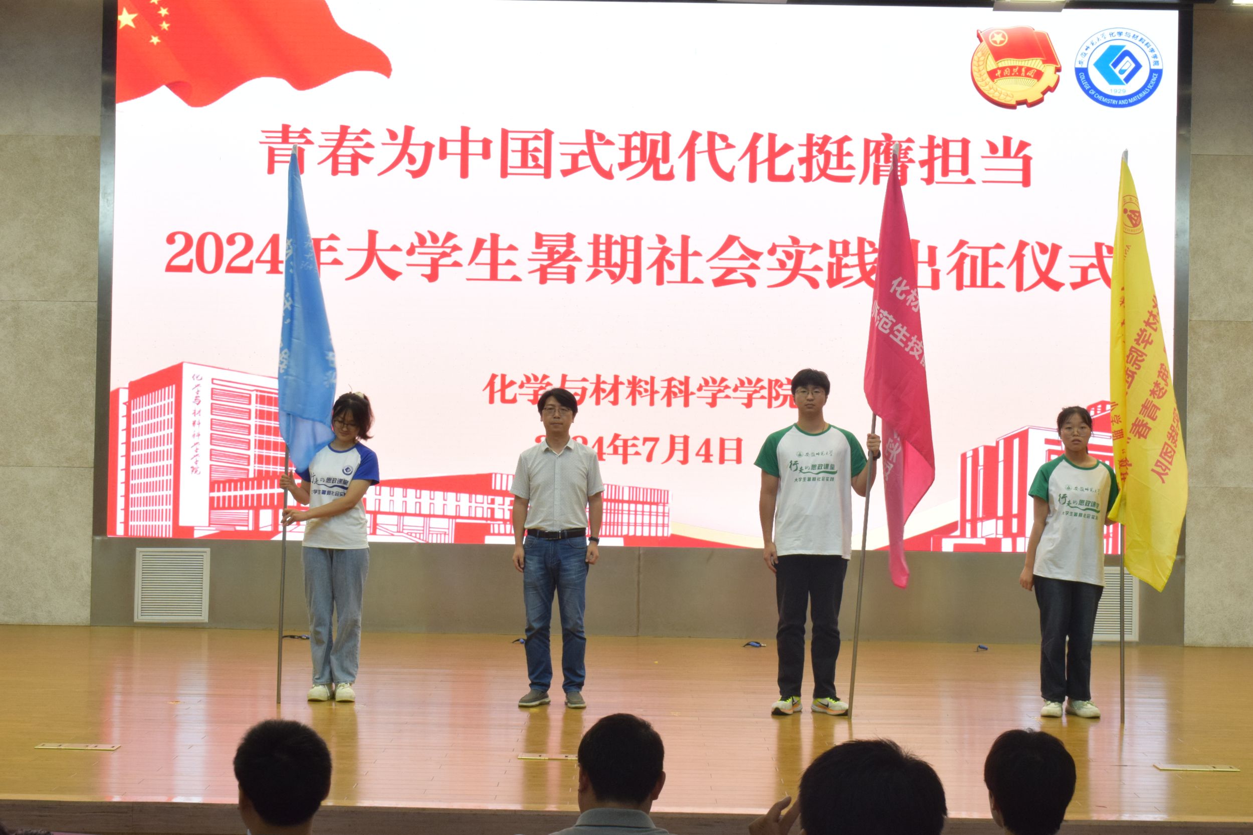 在花津校区实习实训中心一楼报告厅举行“行走的思政课堂”2024年大学生暑期“三下乡”社会实践出征仪式。校思政指导教师、马克思主义学院副院长赵冰,校思政指导教师何晔,学院领导班子、指导教师代表以及全体实践队员参加仪式。出征仪式由学院团委书记梅冠东主持。