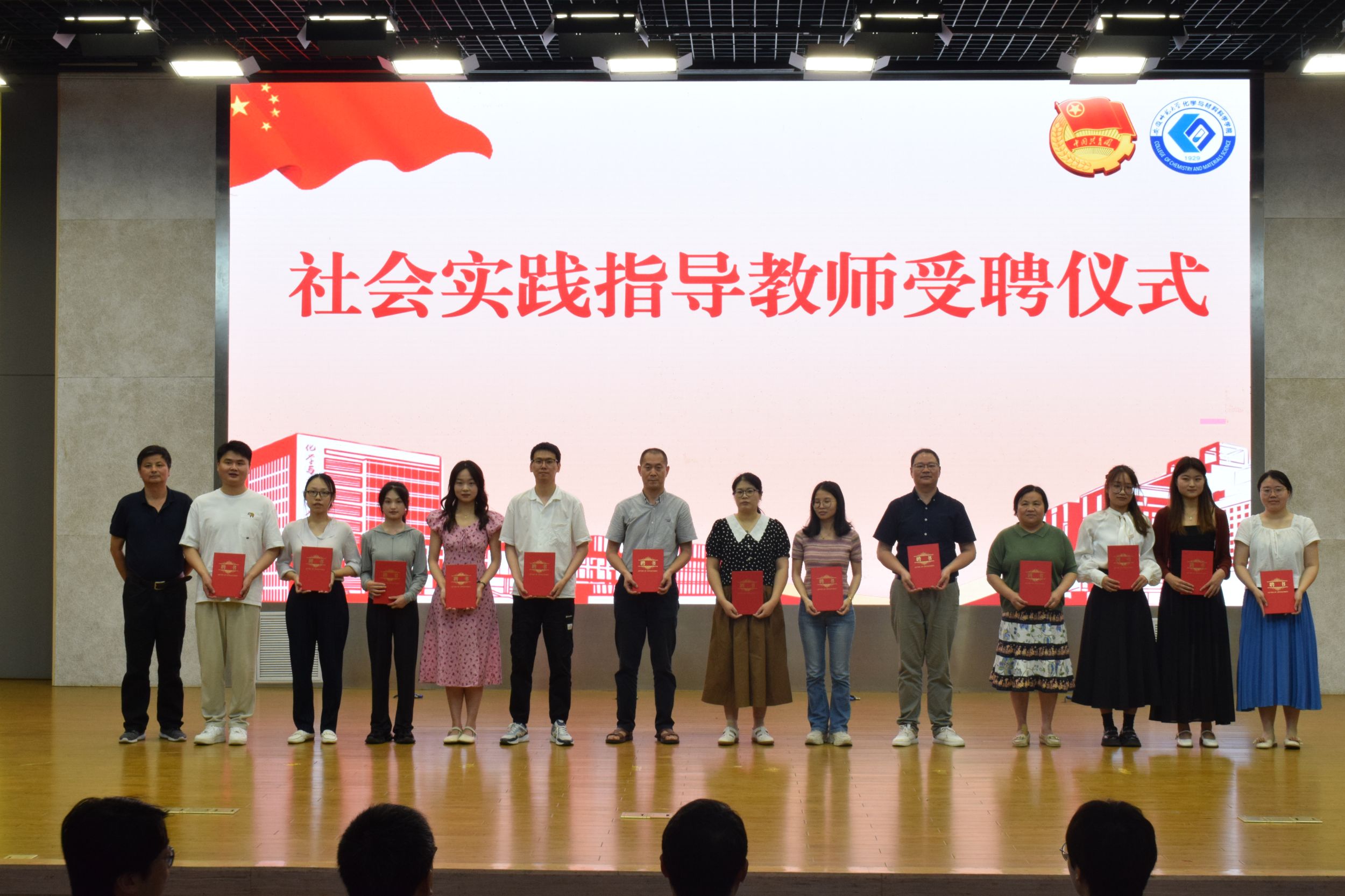 副院长崔鹏宣读了指导老师聘用决定,他强调各位受聘教师要履职尽责,认真指导团队开展实践活动,着力提升学生专业知识与社会实践相结合的能力,全方位、全过程提升学院人才培养质量。学院党委书记汪俊武、副院长周双六为指导老师颁发聘书。2022级化学工程与工艺专业谢艺雯作为暑期社会实践学生代表发言,她表示作为当代大学生,要将理论与实践紧密结合起来,把社会实践作为一门必修课来锻炼自我,要强化理论指导,做党先进理论的传播者,要立足学科专业,做乡村基层的服务者,还要坚持实干精神,做脚踏实地的实践者。