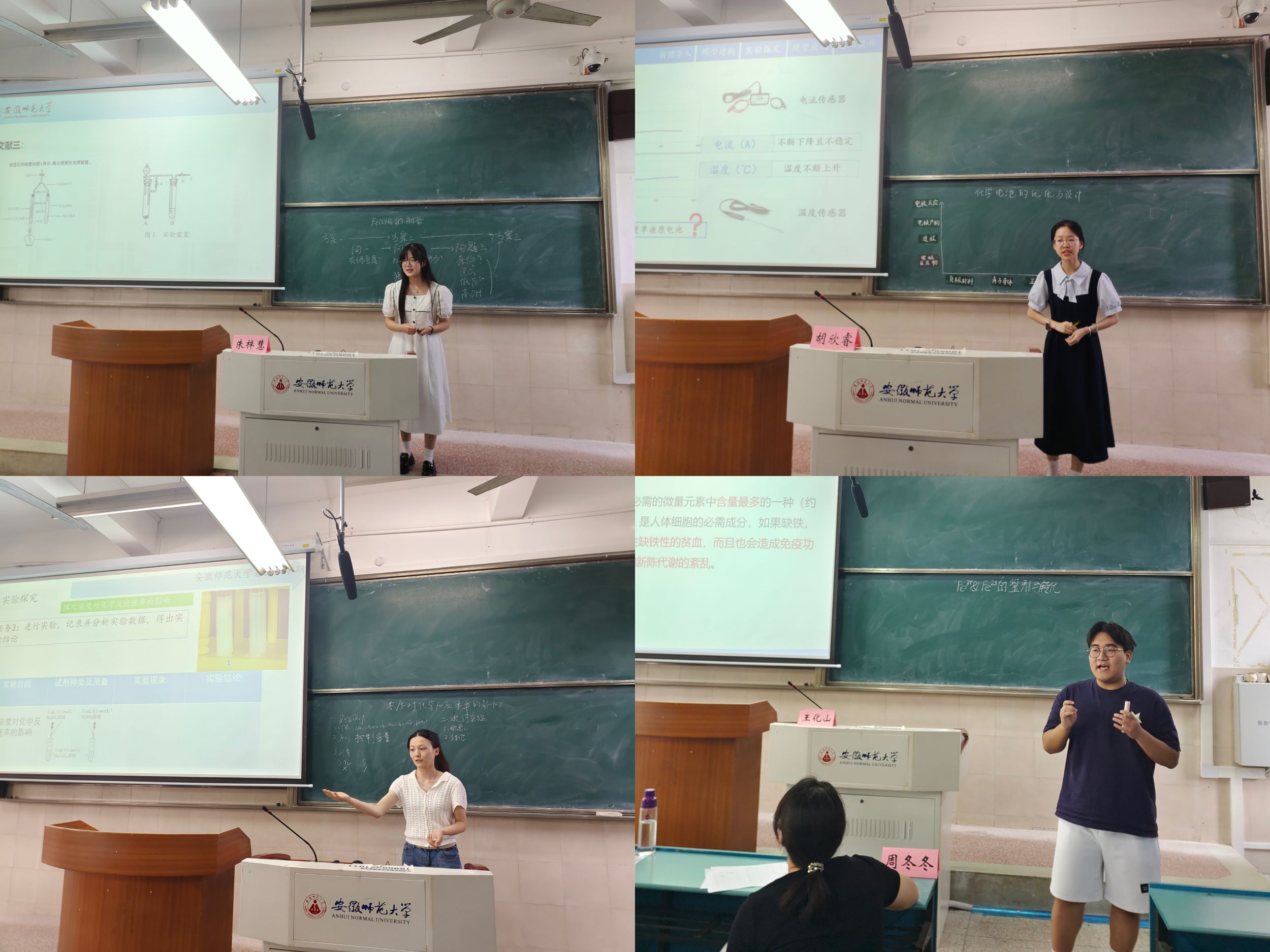 本次比赛分为模拟授课、教学板书、教学教案、主题演讲四个部分,旨在展示优秀师范生的教学实践能力、教案设计能力、板书能力、多媒体运用能力、课堂设计能力、气氛调节能力、语言表达能力等各个方面的综合素质。在模拟授课环节,各位同学从高中化学教材中自选课题,深入挖掘课本内涵,精心设计互动环节,选手们从教学设计到课件制作都做了充足的准备。比赛过程中,每位选手都展示了自己独特的风采,赢得了在场观众的热烈掌声。胡欣睿通过风趣的语言介绍了化学电池的优化与设计,展现了对课堂节奏的掌握能力;冯舒雅从打印机的工作原理出发,进行了墨粉成分的检验和铁不同价态化合物的学习;周瑞瑞以天然气和煤气的定价为切入点,联系生活实际讲解了反应热的测定。
