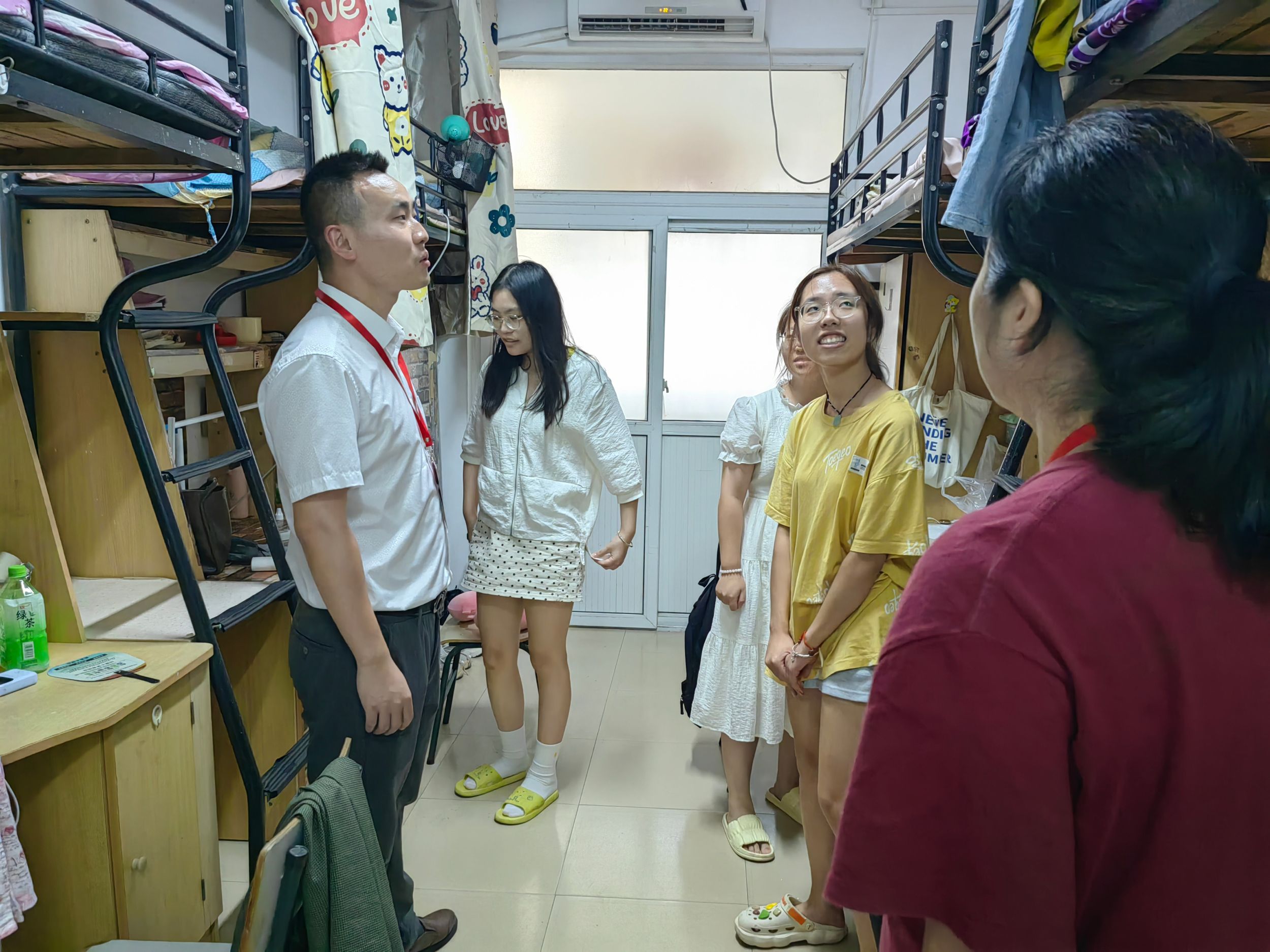 党政领导班子与新生辅导员一同走访学院新生宿舍,深入了解同学们的入住和适应情况。学院领导从住宿饮食、生活习惯、发展规划等多方面了解新生情况。新生辅导员对于同学们入住后所遇到的各类问题,认真听取记录,现场反馈沟通,帮助同学们尽快适应新环境、新生活。晚上,各专业辅导员分别召开了“开学第一课”主题班会,就新生入校各项工作进行部署。