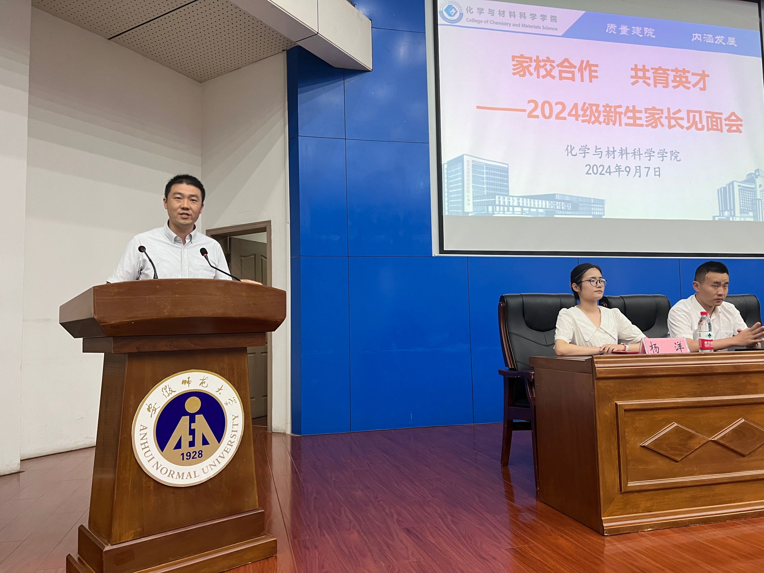 为了增进新生及家长对学院的了解,进一步促进家校共育,增进家校沟通,7日下午,学院在图书馆报告厅举行2024级新生家长见面会活动。学院党委书记汪俊武,党委副书记李古州,副院长周双六、崔鹏、陈郑,新生辅导员王芳、杨洋参会。新生家长会上,周双六从学院的发展历史、师资力量、学科专业特色、学生毕业就业去向等方面展开详细介绍。李古州以“家校合作,共育英才”为主题,从“工作理念有什么、管理制度有什么、学生护航干什么、家校合作怎么做”四个方面做详细解读,希望家长鼓励孩子树立目标、帮助孩子尽快适应环境、拥有平和心态并积极做好家校沟通配合。汪俊武在总结讲话中指出,希望2024级全体新同学,能将进入大学当做一个全新的起点,奋发向上,努力拼搏,“师大人要有师大人的样子”。他强调,学生的健康成长也离不开家长与学校之间的配合。只要家校携手,师生同心,加强沟通交流,相互理解包容,就能为每一位孩子成人、成才、成功、成长打好坚实的基础。